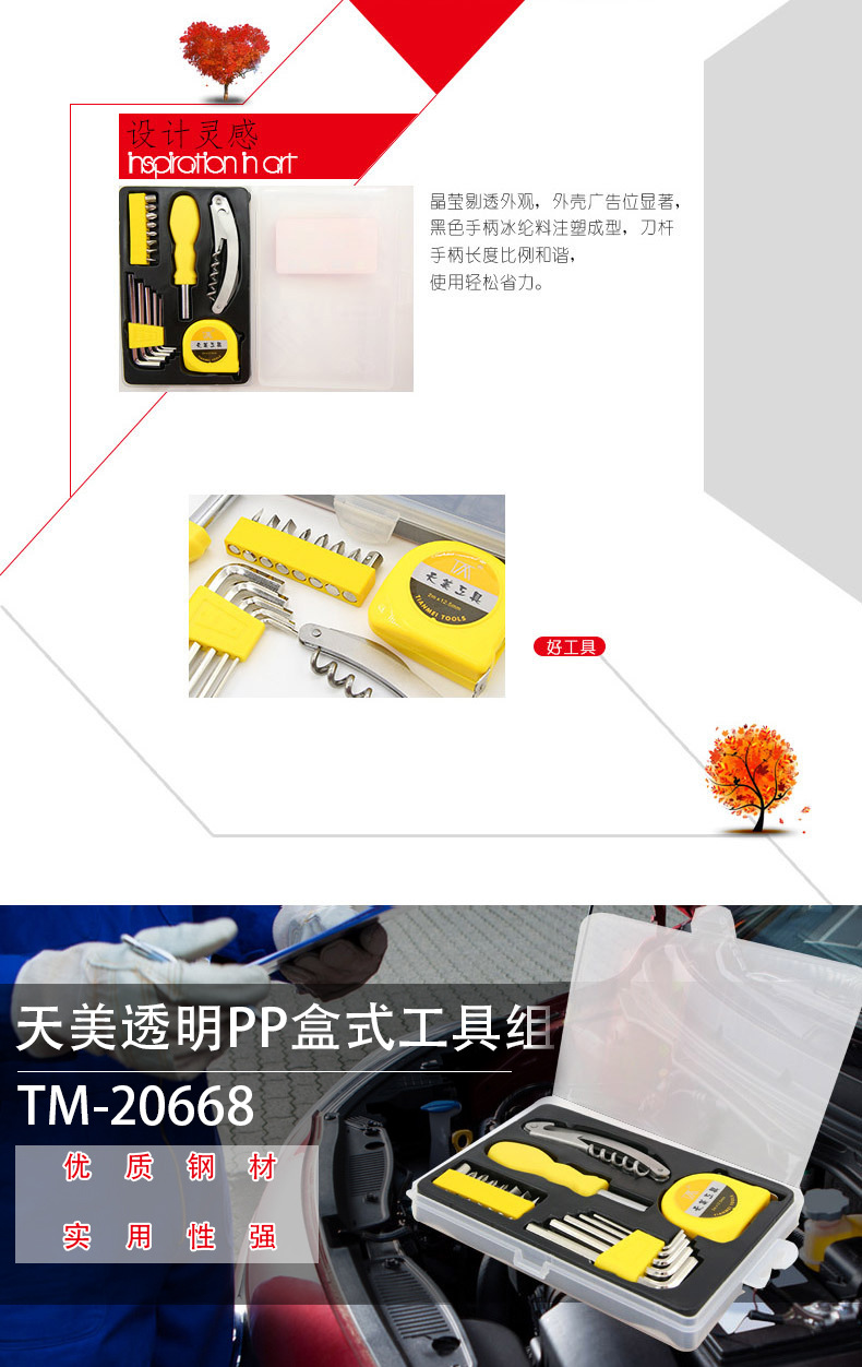 商品名称:17合1五金工具组合套装 优质透明盒实用工具17件套 农村家庭礼品派发
