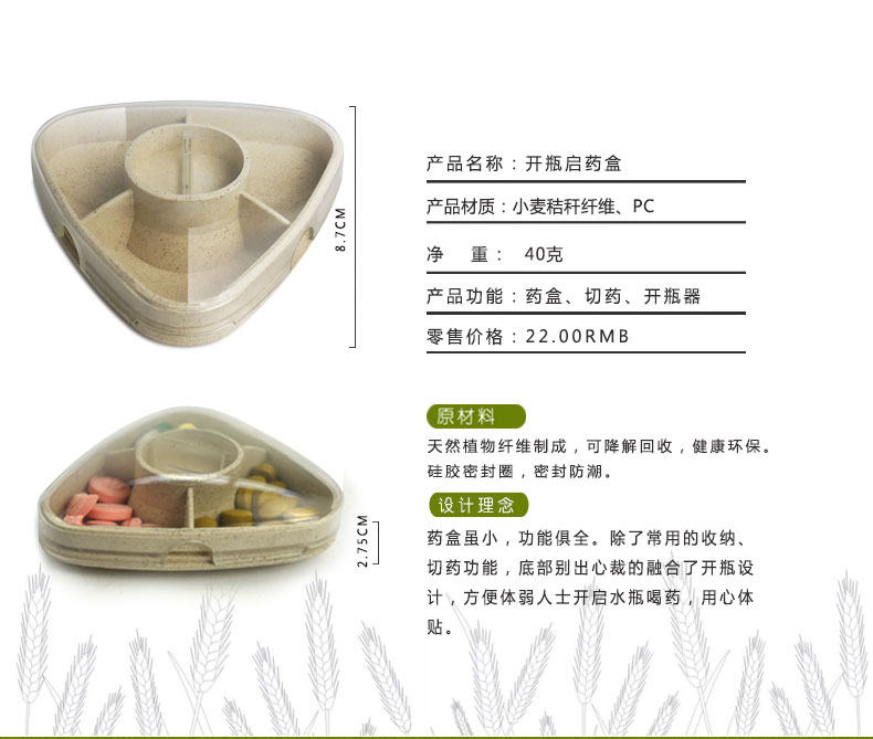商品名称:天然植物纤维多功能药盒 小麦秸秆开瓶器切药器药盒收纳盒 贴心小礼品