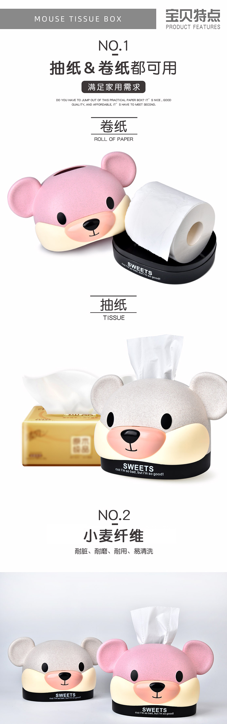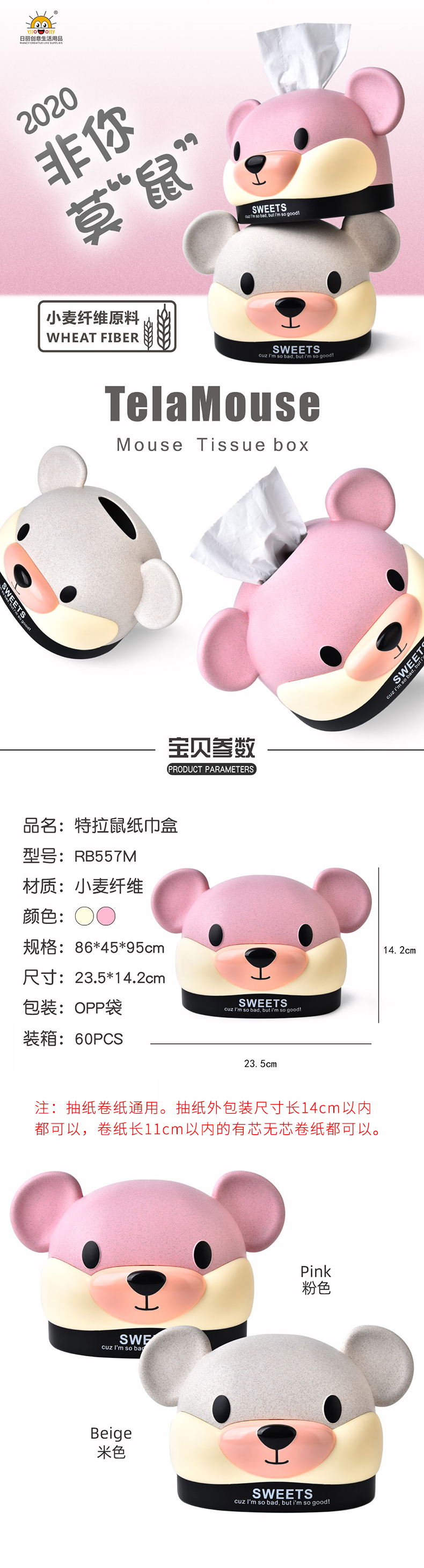 特拉鼠小麦纤维纸巾盒 卷纸抽纸盒--米色(RB557M) 搞促销送什么礼品好