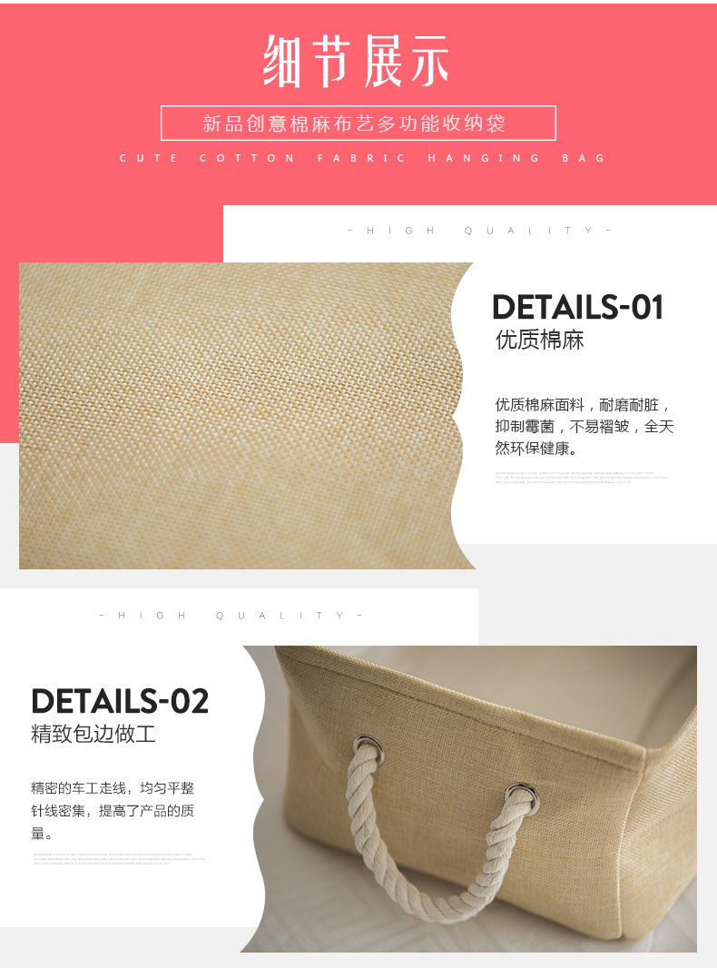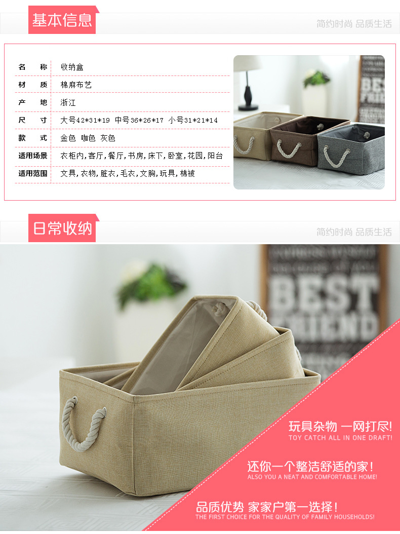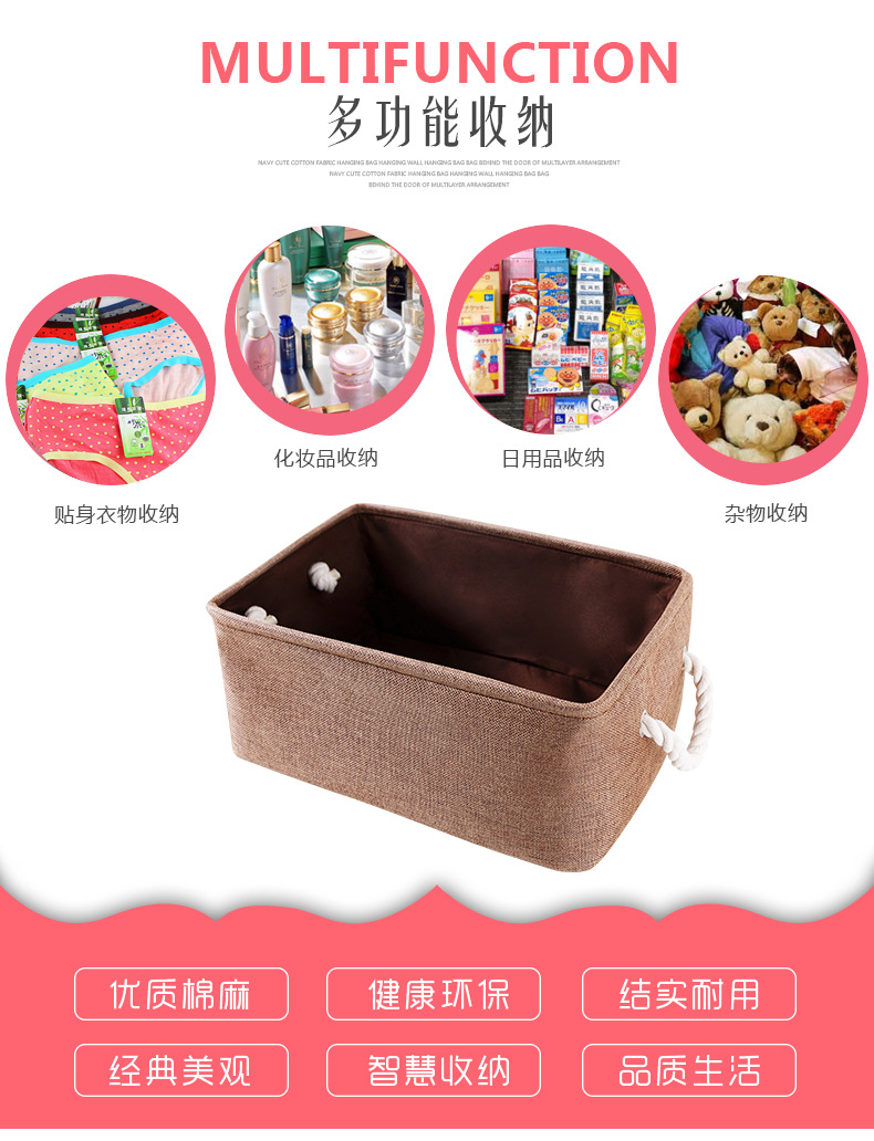 商品名称:多功能布艺收纳筐 加厚棉麻收纳盒 居杂物收纳盒 实用礼品(大号)
