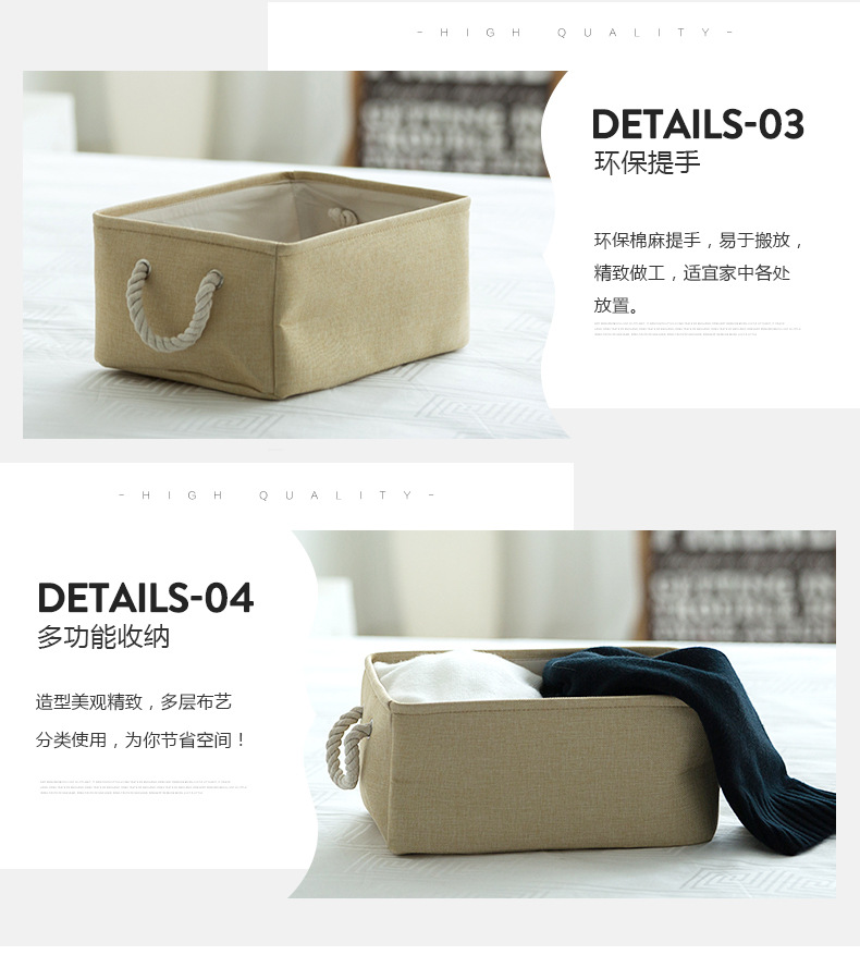 多功能布艺收纳筐 加厚棉麻收纳盒 居杂物收纳盒 实用礼品(大号)