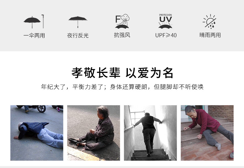 喜途 可拆分式多功能分离式户外登山老人拐杖专用特色创意礼品伞 老人礼品