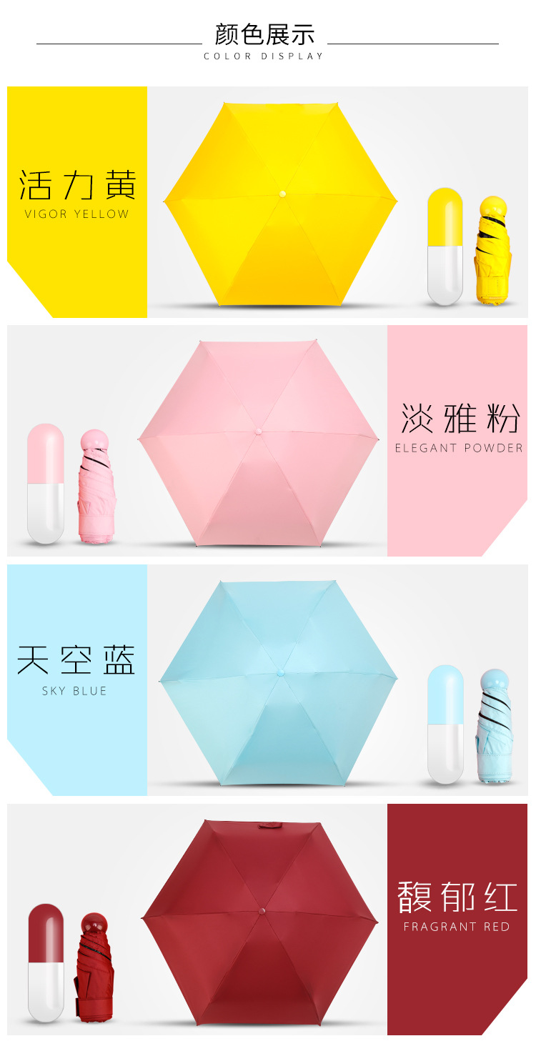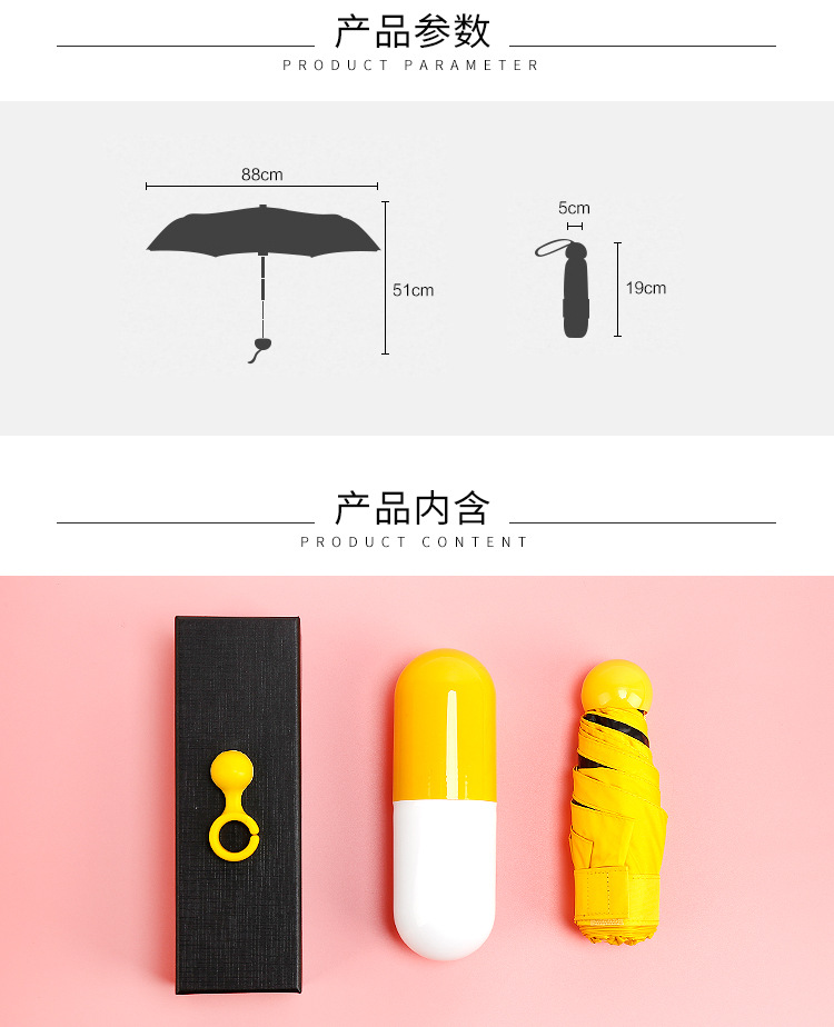 商品名称:胶囊伞 晴雨伞 五折迷你伞 口袋伞定制 创意礼品案例