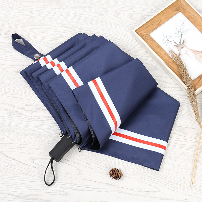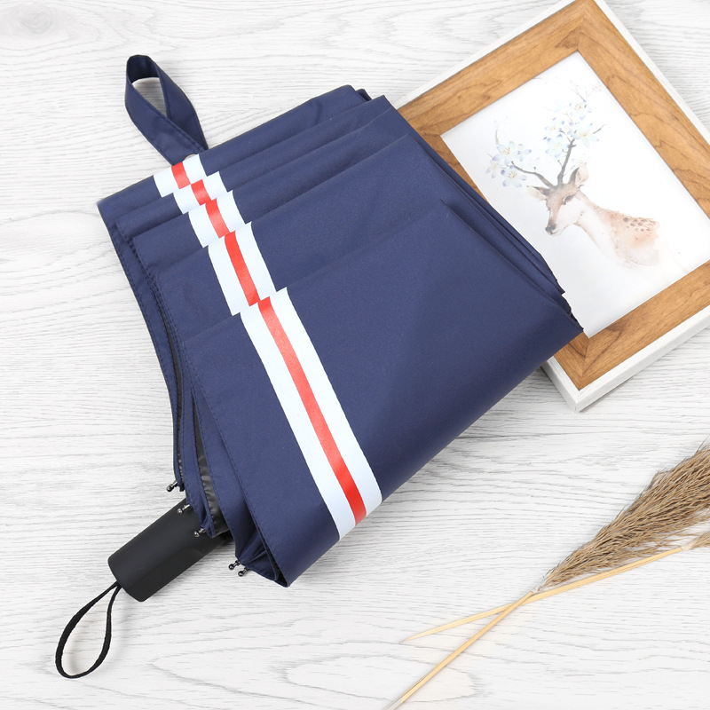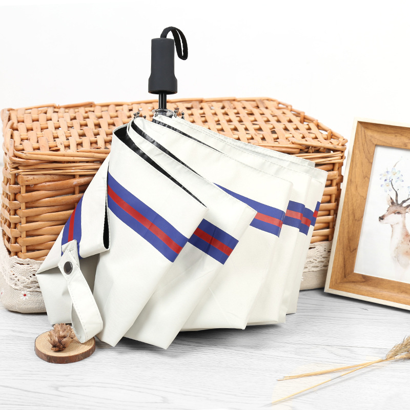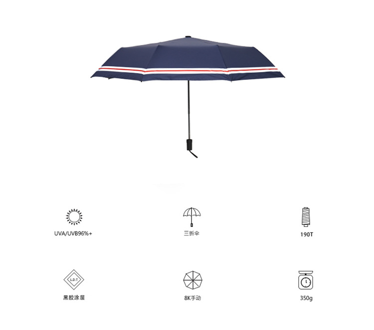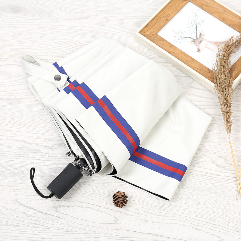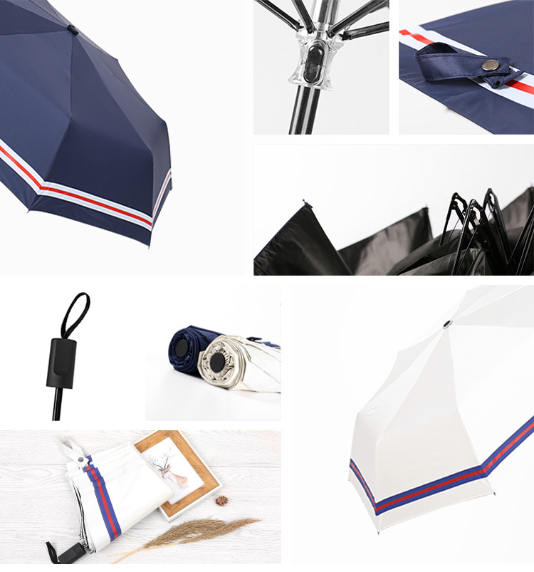 商品名称:创意遮阳伞 小清新条纹伞 三折黑胶伞防晒防紫外线太阳伞
