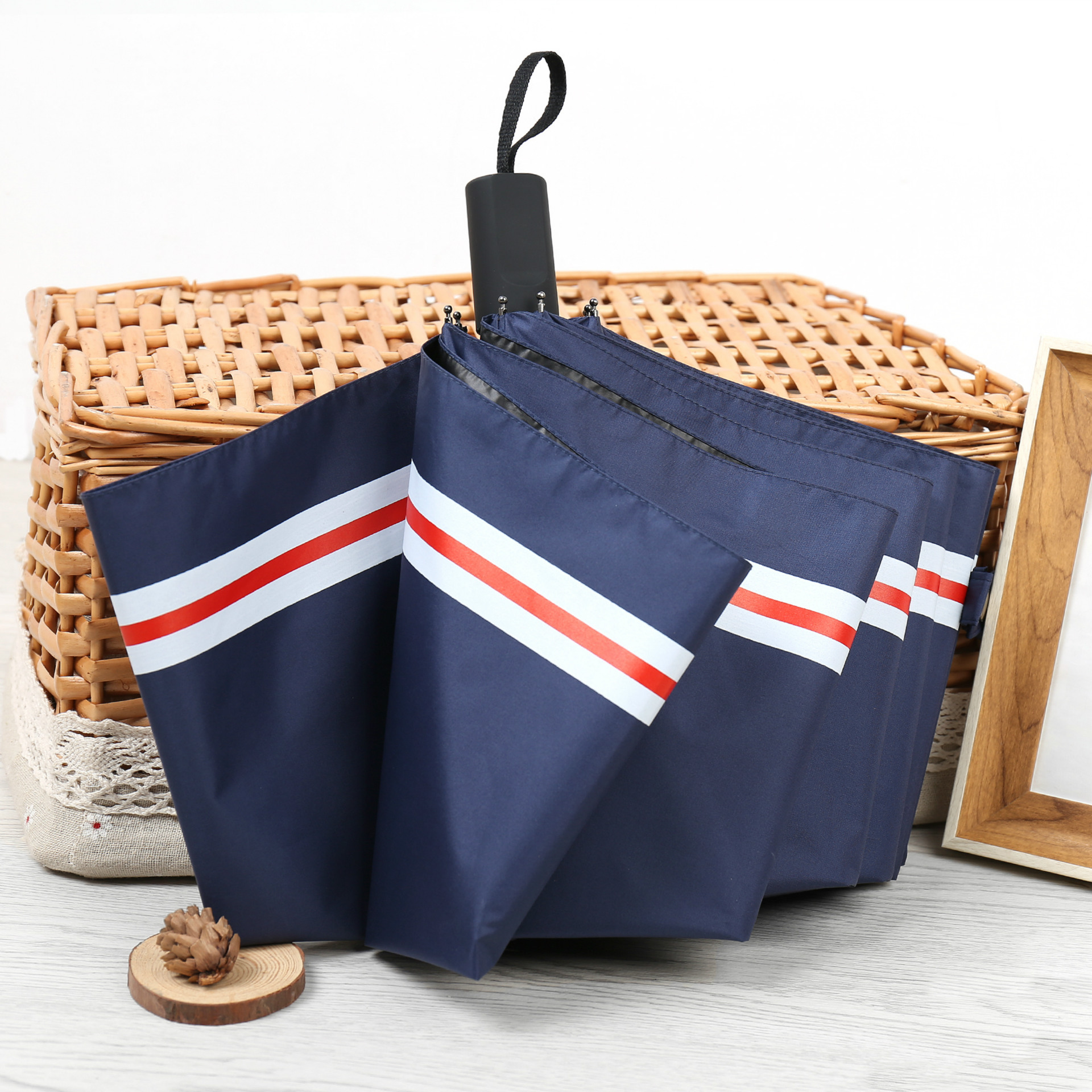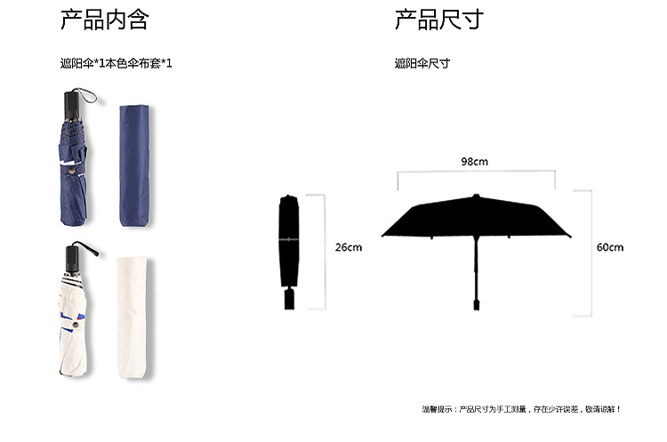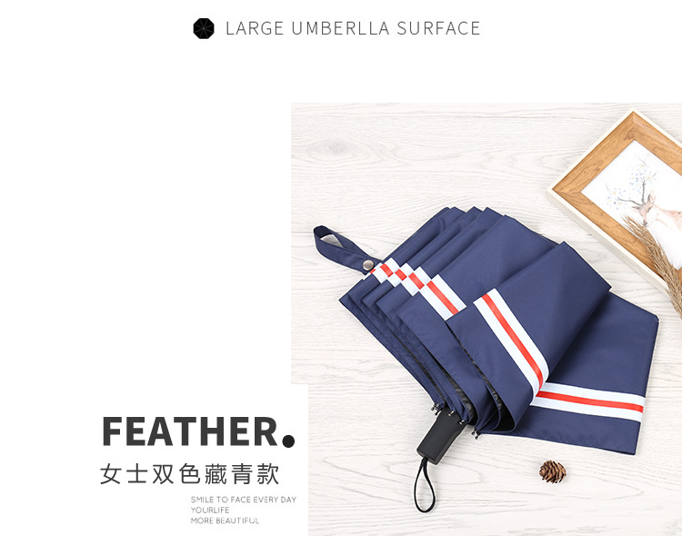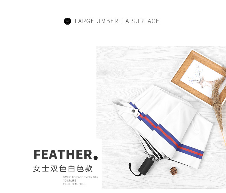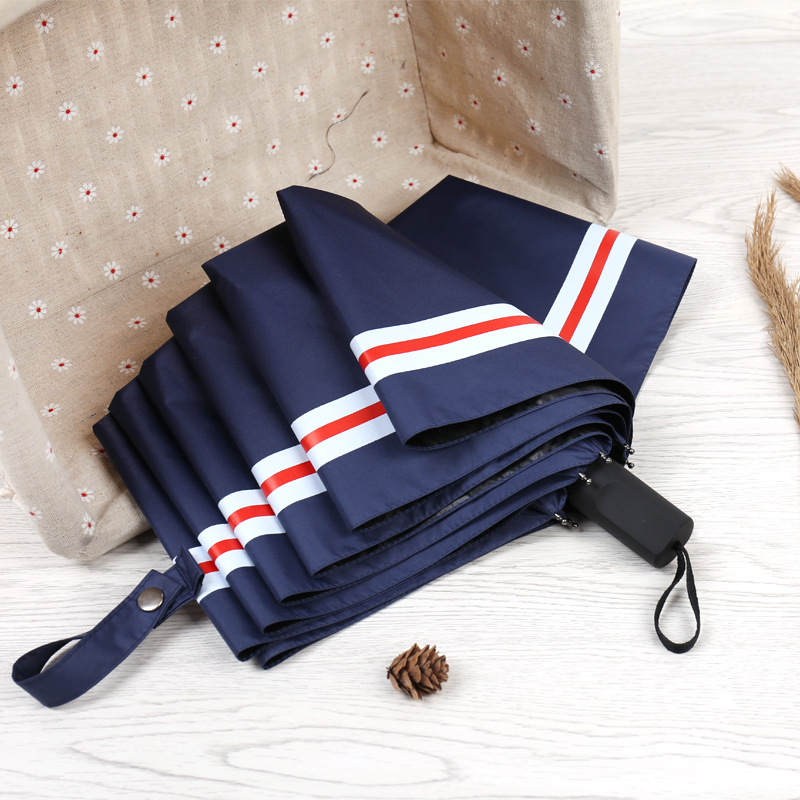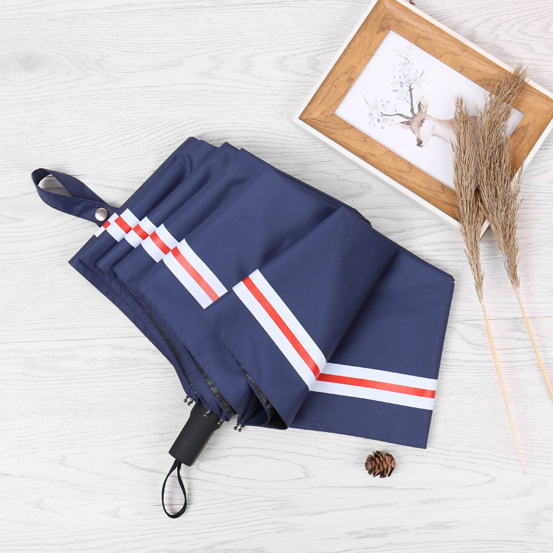 商品名称:创意遮阳伞 小清新条纹伞 三折黑胶伞防晒防紫外线太阳伞