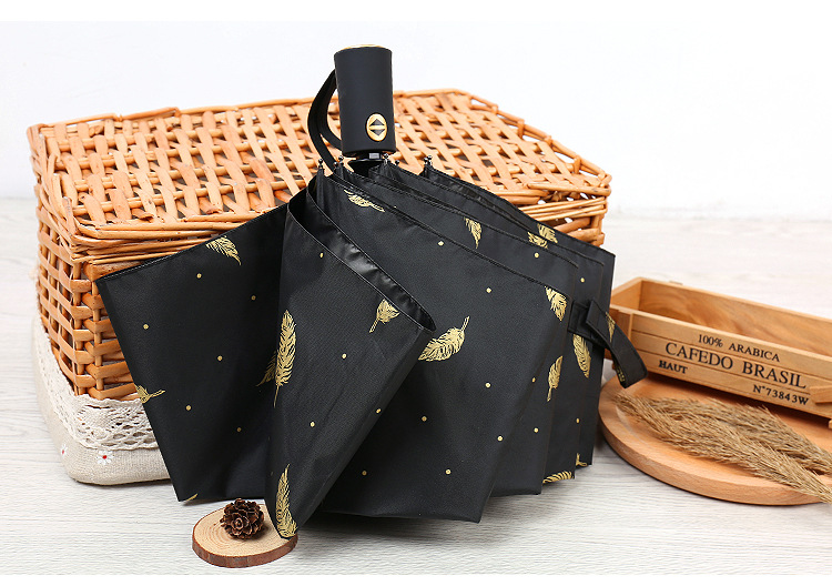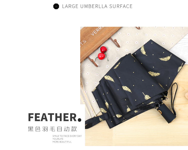 商品名称:个性创意折叠羽毛伞 全自动黑胶防晒伞 防紫外线太阳伞 问题比赛 奖品
