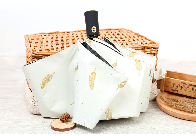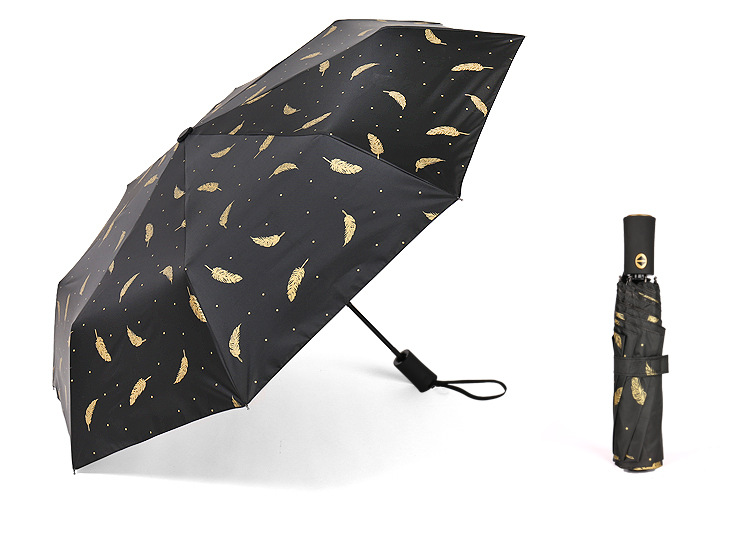 个性创意折叠羽毛伞 全自动黑胶防晒伞 防紫外线太阳伞 问题比赛 奖品