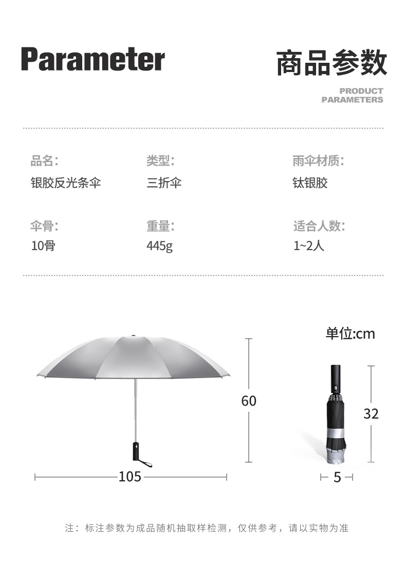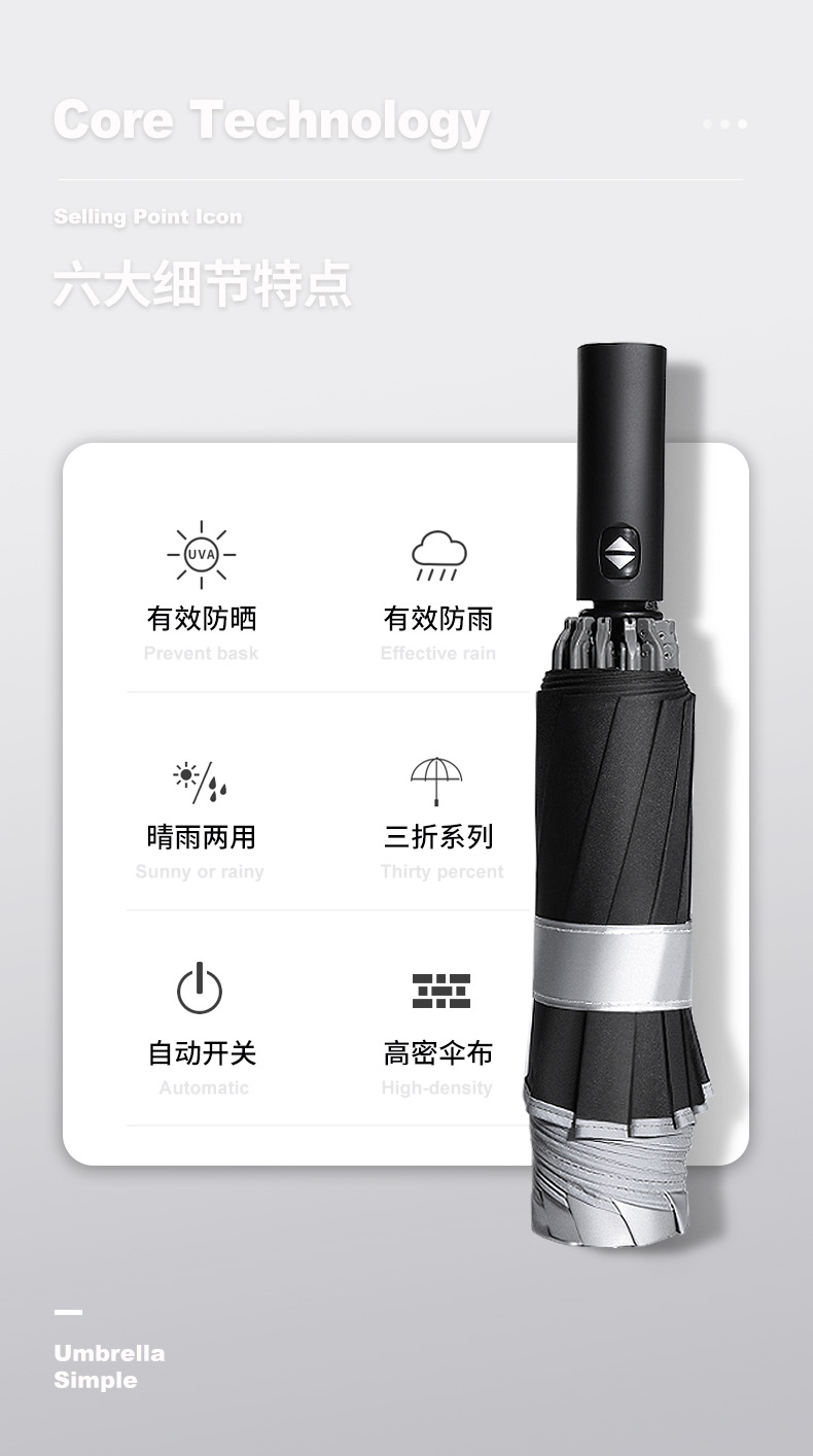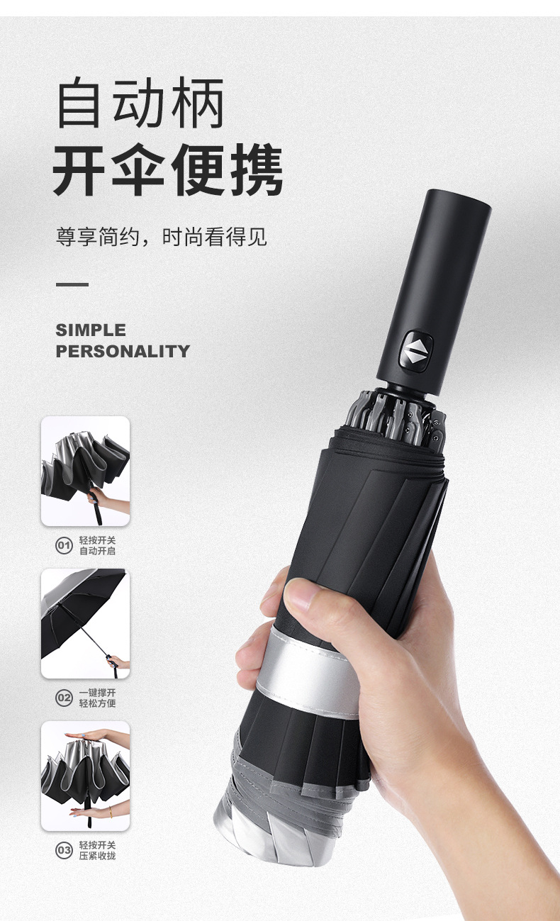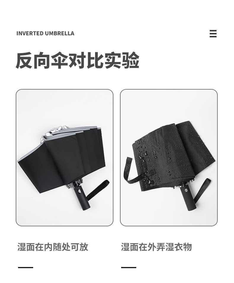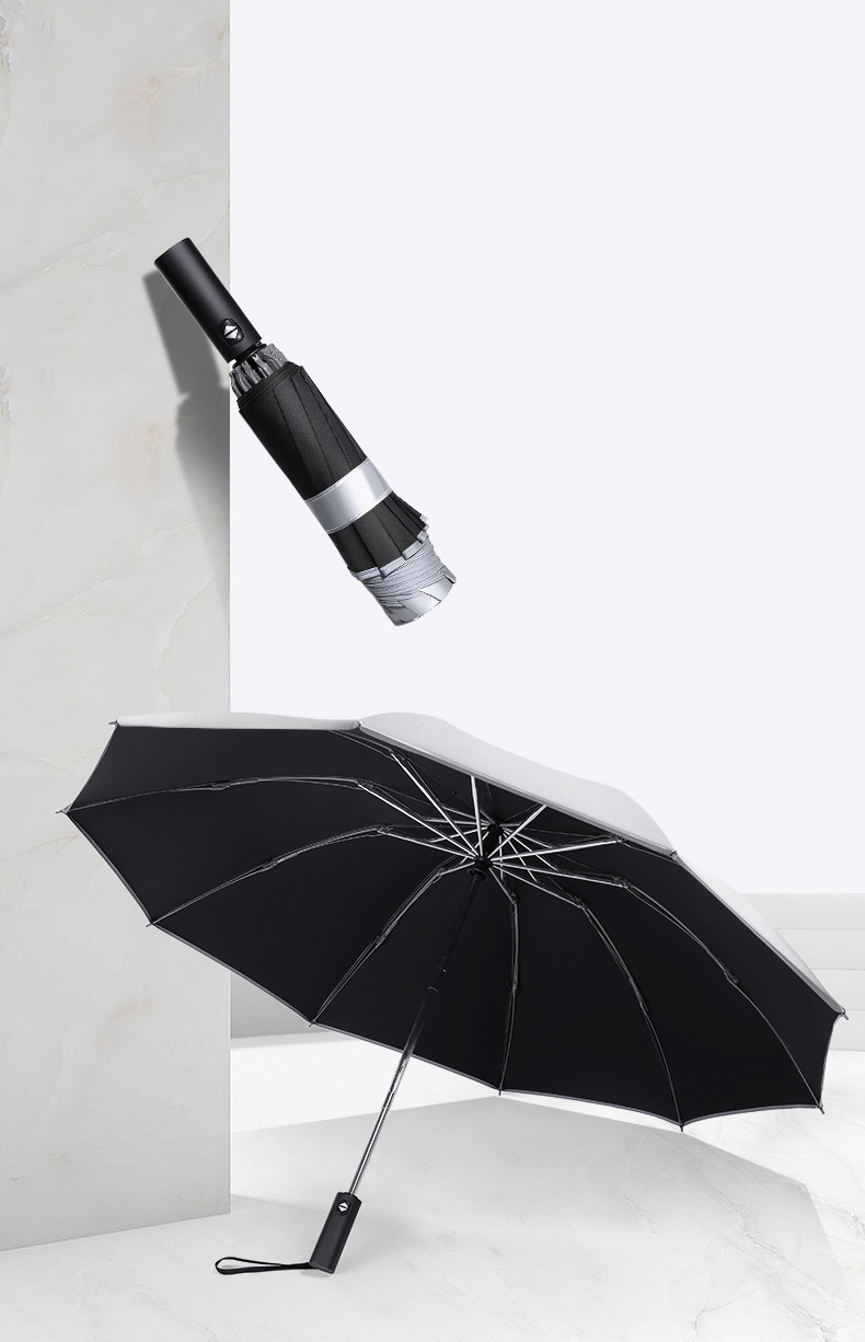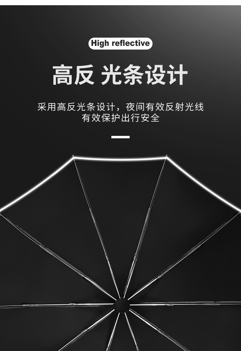商品名称:夜间反光全自动伞 汽车反向伞 钛银折叠晴雨伞 10骨三折伞 汽车礼品