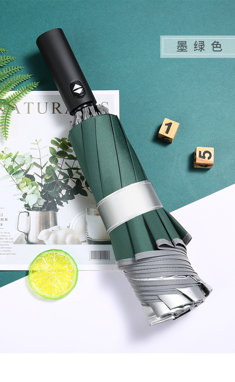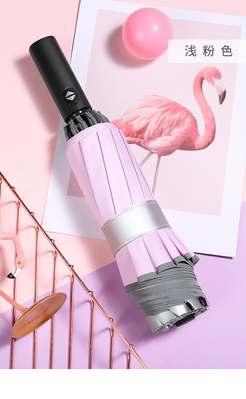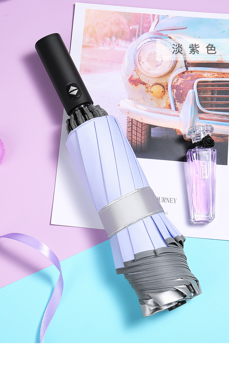 莫兰迪色系三折晴雨伞 手动/全自动黑胶太阳伞 防紫外线折叠伞定制