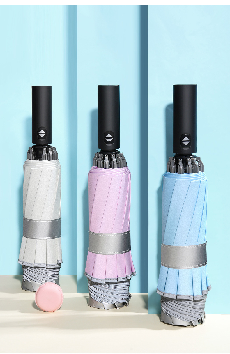 夜间反光全自动伞 汽车反向伞 钛银折叠晴雨伞 10骨三折伞 汽车礼品