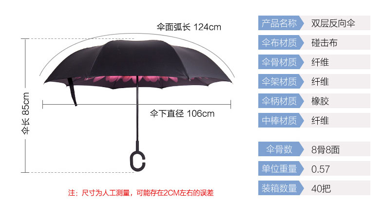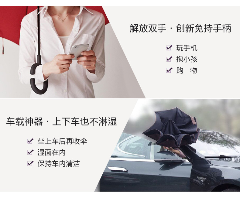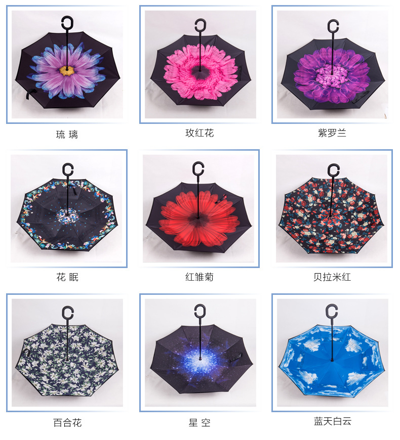 商品名称:满天星反向伞 创意第三代c型手柄双层免持式反向伞 长柄伞 公司活动纪念品