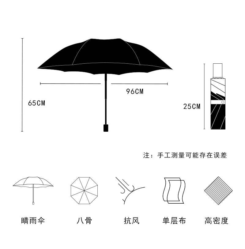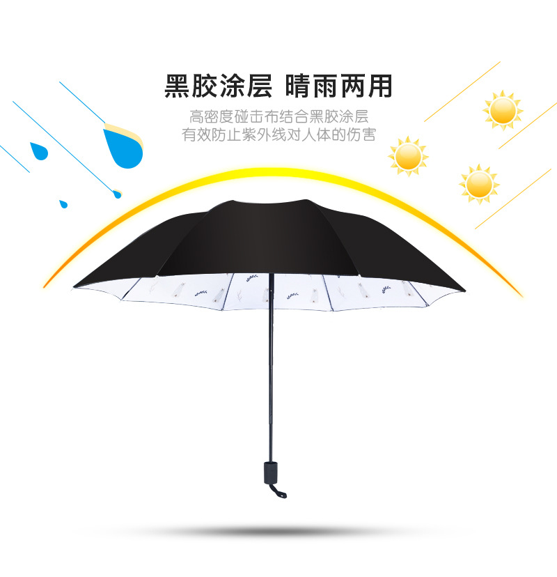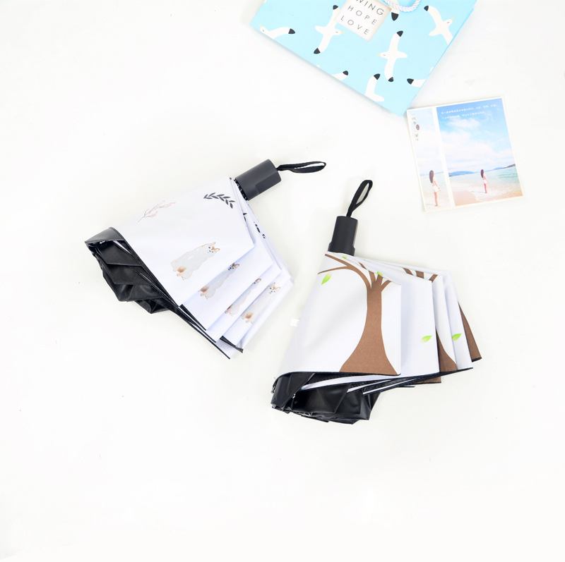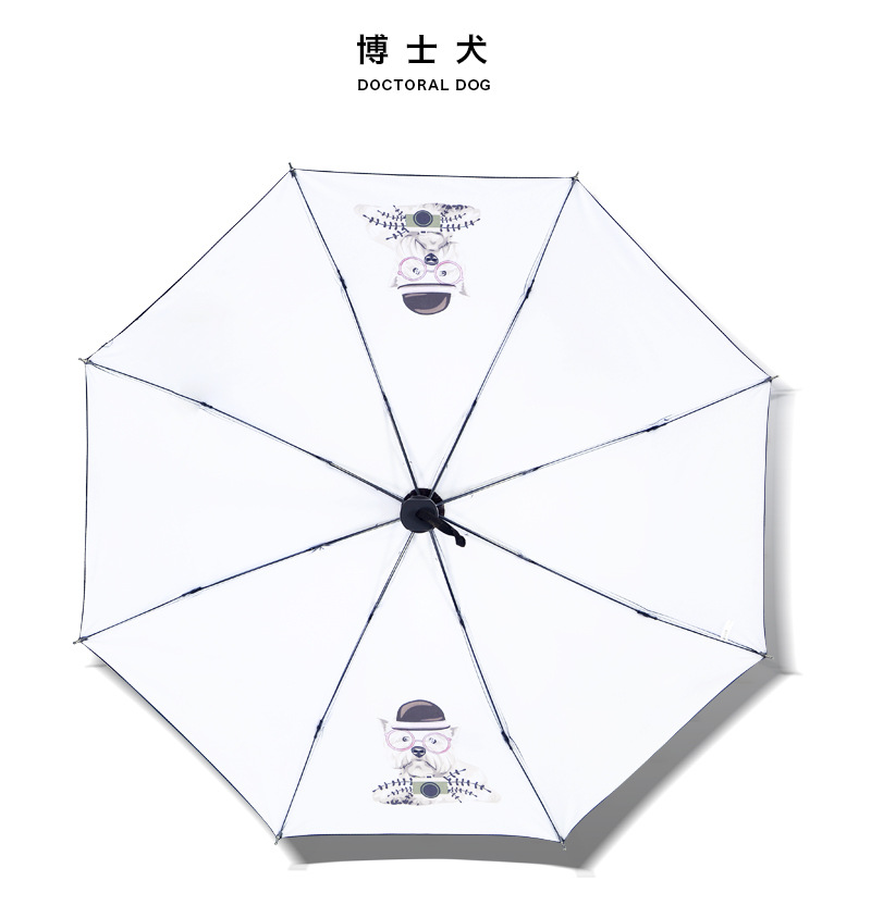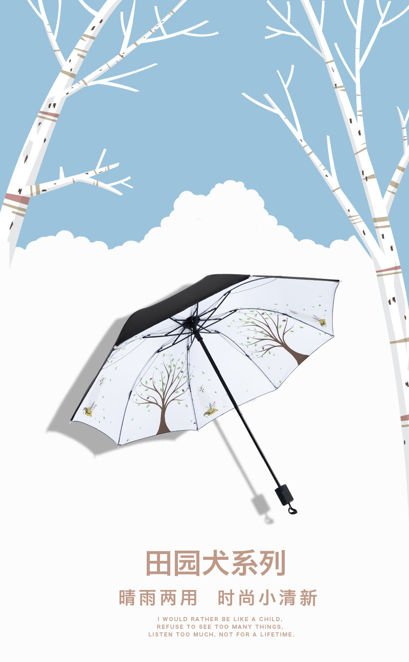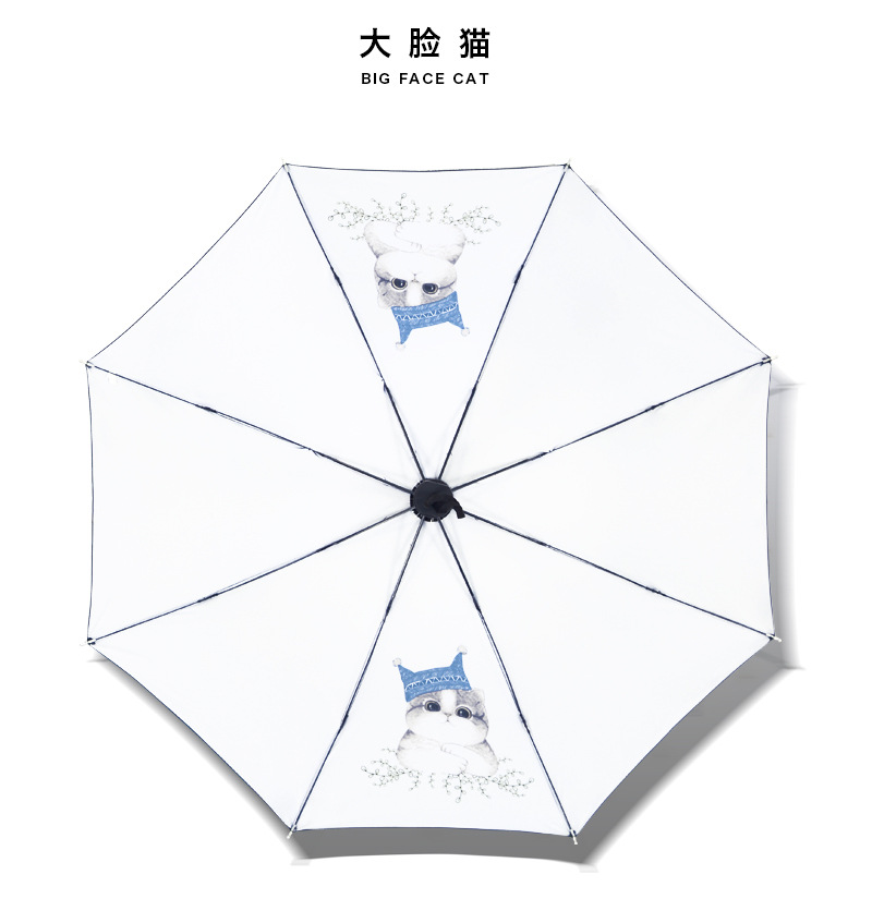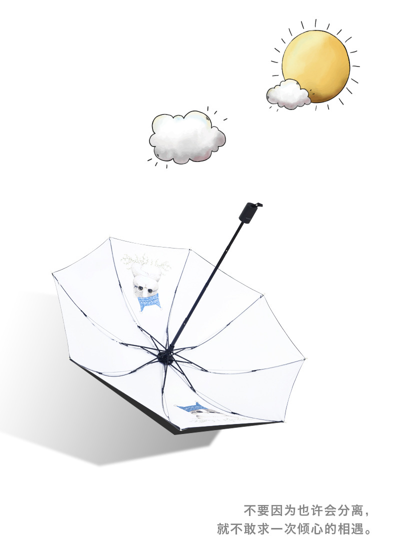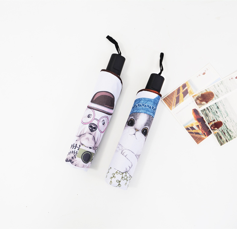 商品名称:时尚小清新晴雨两用小黑伞卡通猫狗图案三折伞 夏季活动赠品