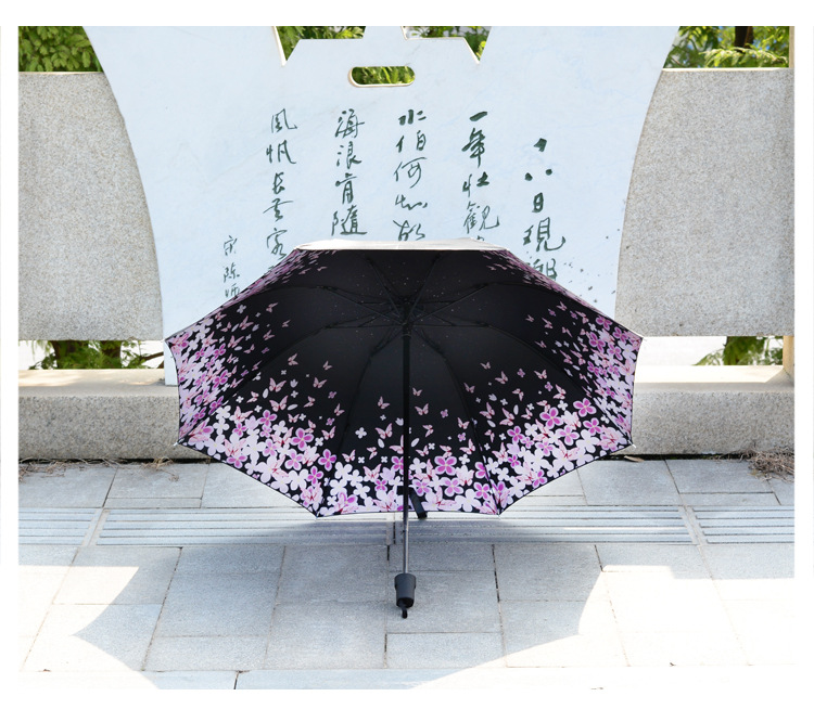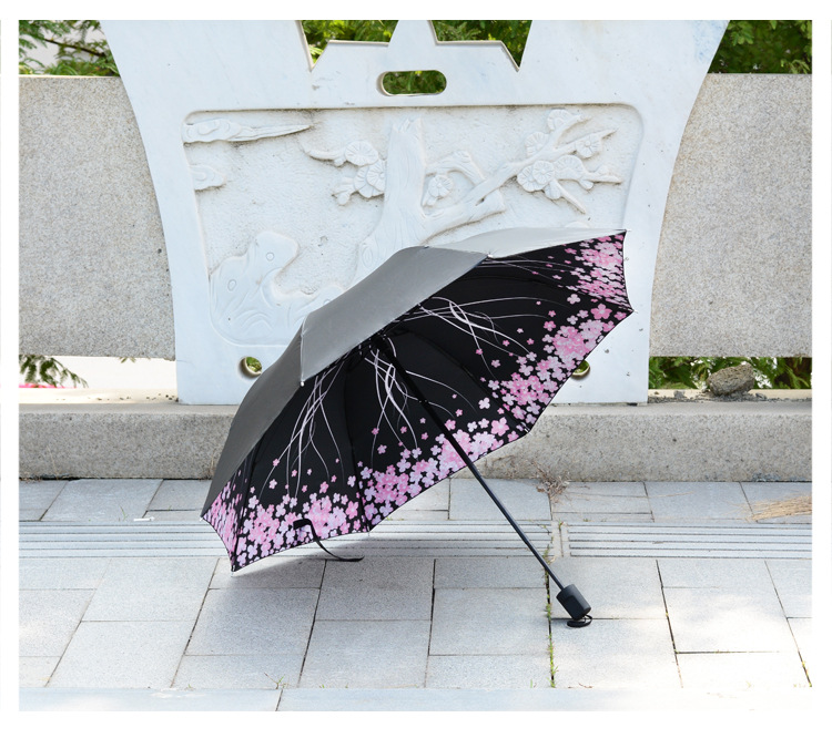 商品名称:【樱花醉】外黑胶晴雨伞 三折防嗮遮阳伞 折叠晴雨两用伞 实用促销礼品