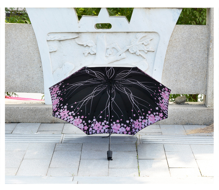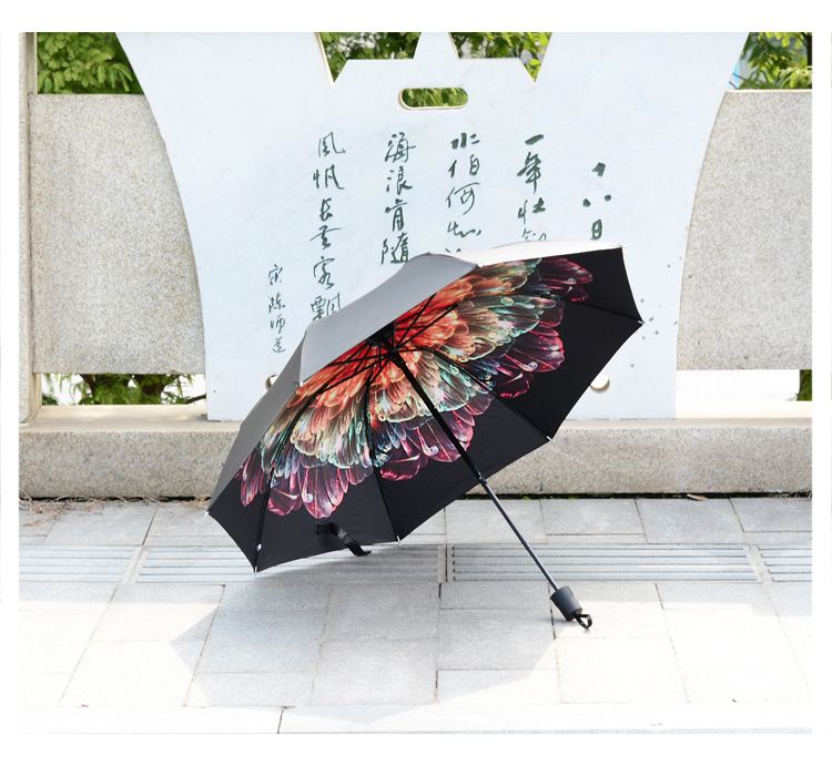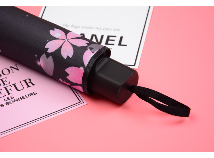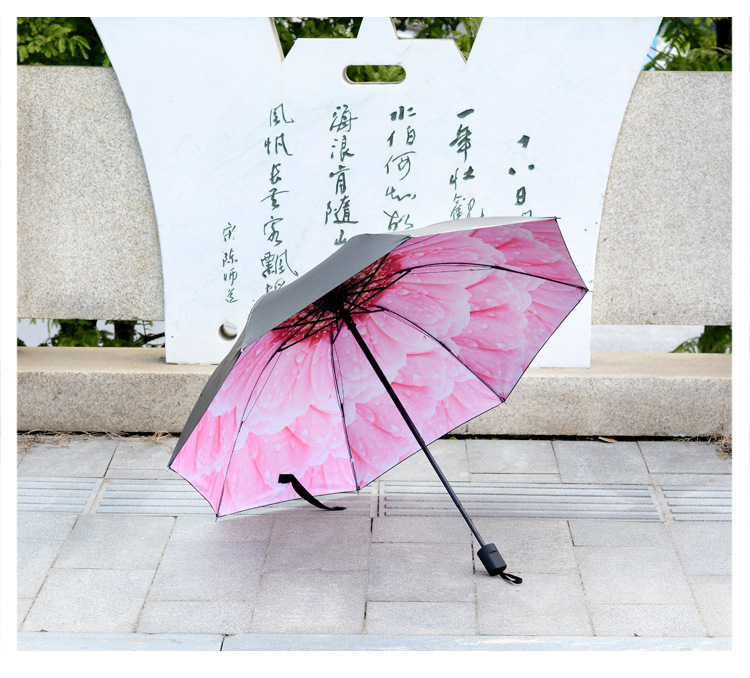 商品名称:【西瓜红】外黑胶晴雨伞 三折防嗮遮阳伞 折叠晴雨两用伞 实用小礼品