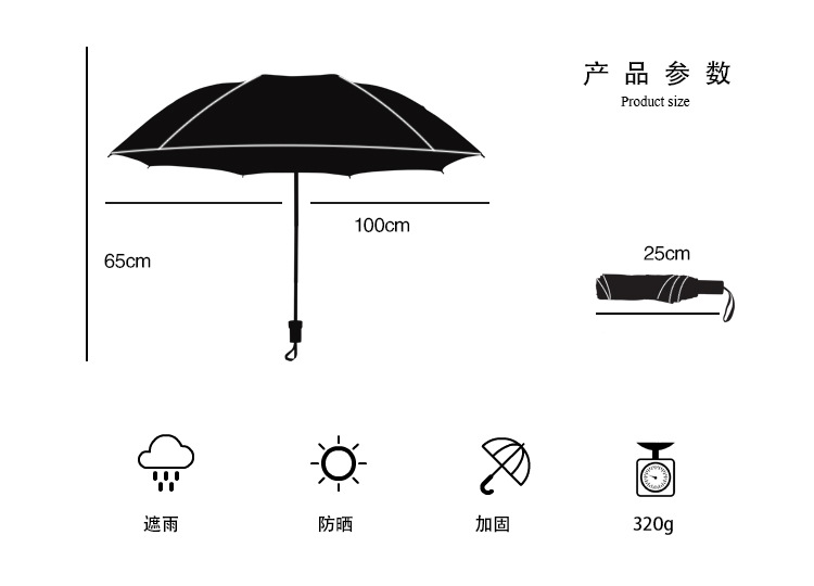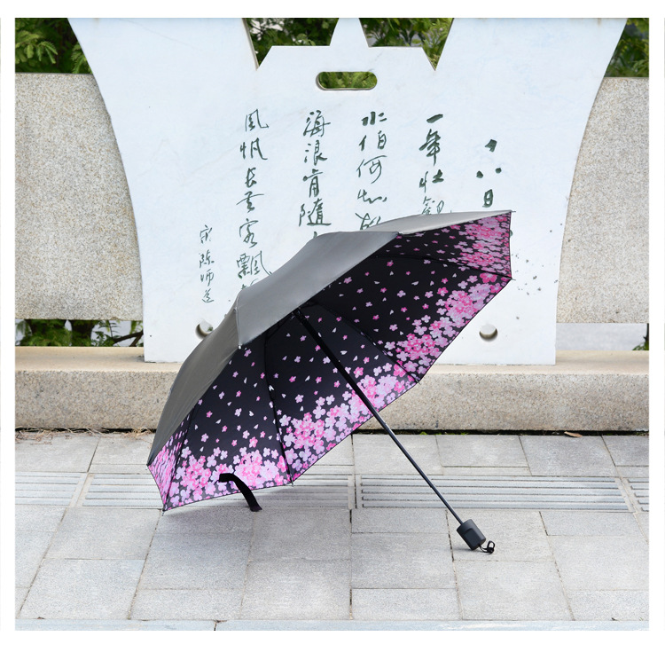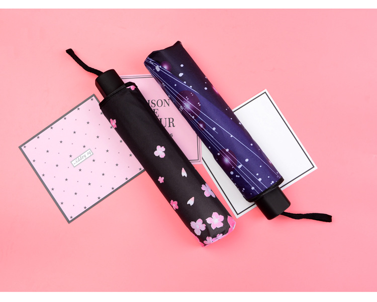 商品名称:【樱花树】外黑胶晴雨伞 三折防嗮遮阳伞 折叠晴雨两用伞 实用促销礼品