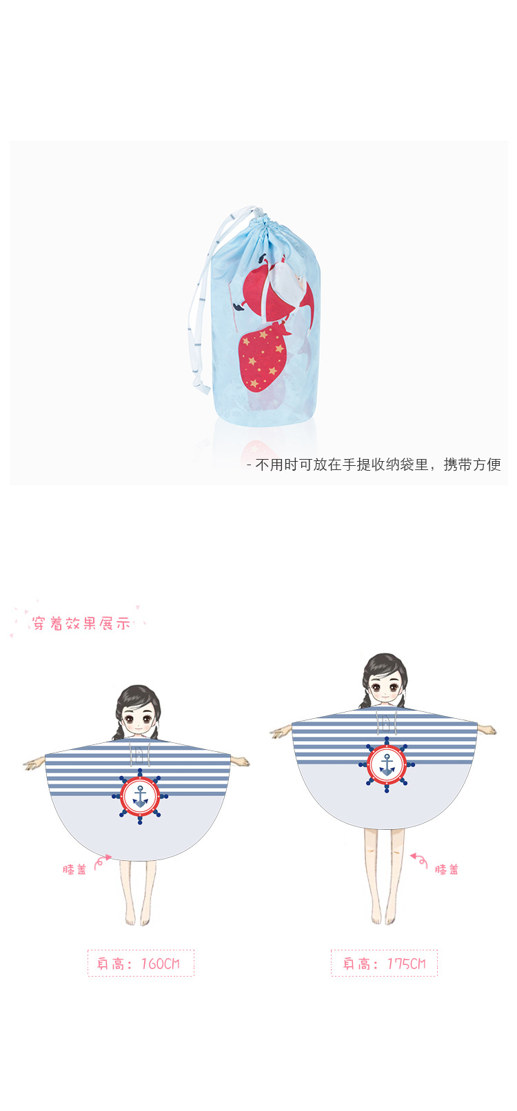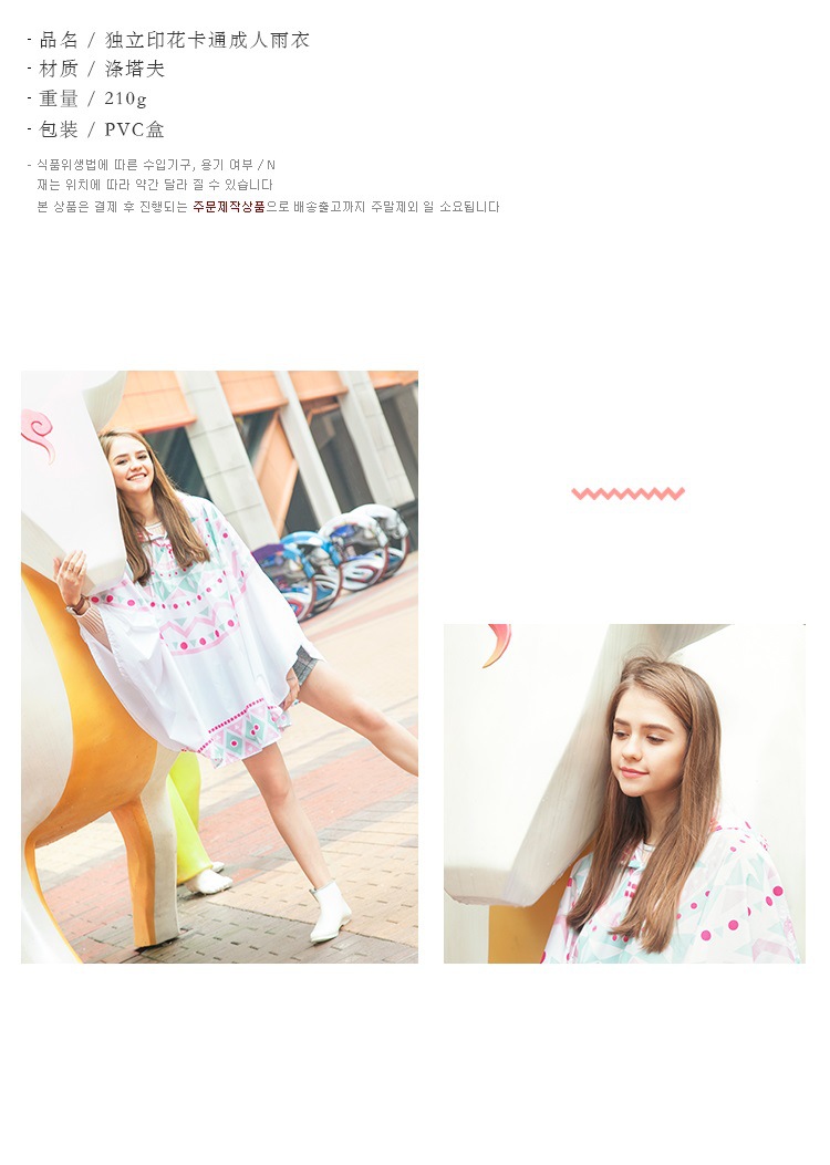 商品名称:【绿色大象】 清新时尚出游成人雨披 轻薄透气时尚印花雨衣