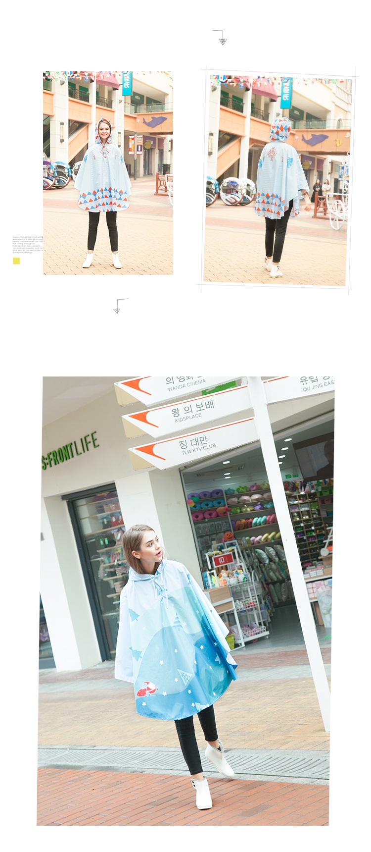 商品名称:【蓝色小熊】 清新时尚出游成人雨披 轻薄透气时尚印花雨衣
