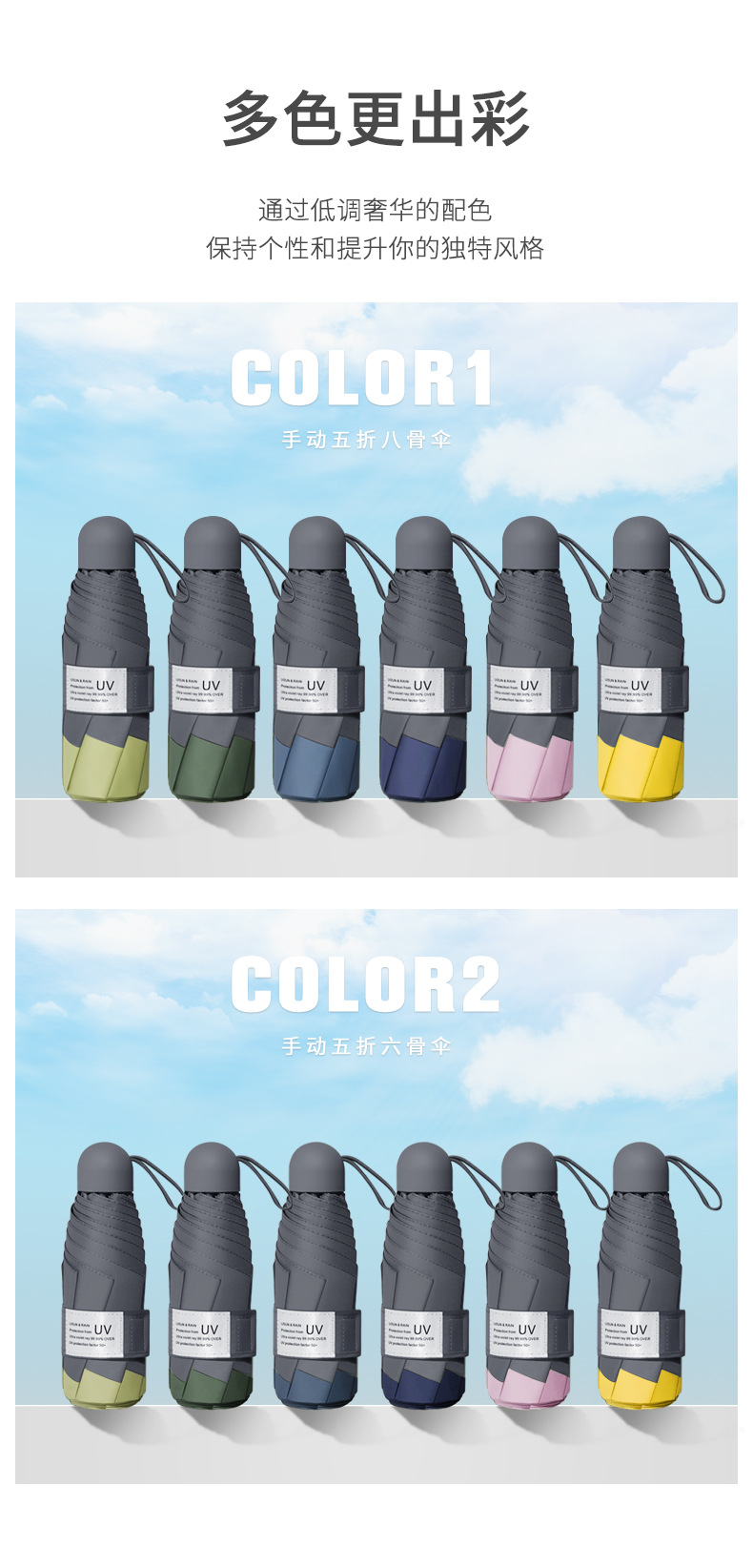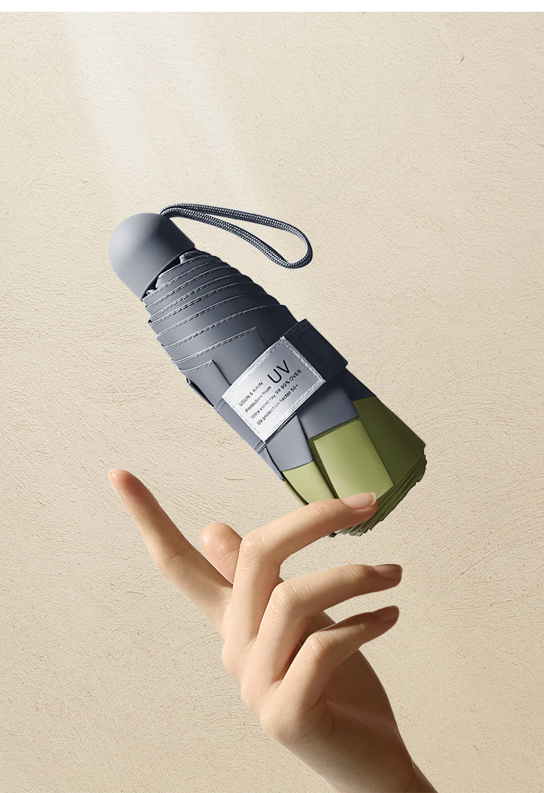商品名称:拼色黑胶五折伞 UV防紫外线迷你胶囊伞 遮阳伞定制