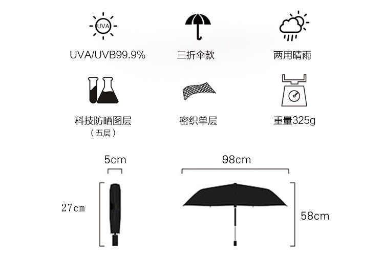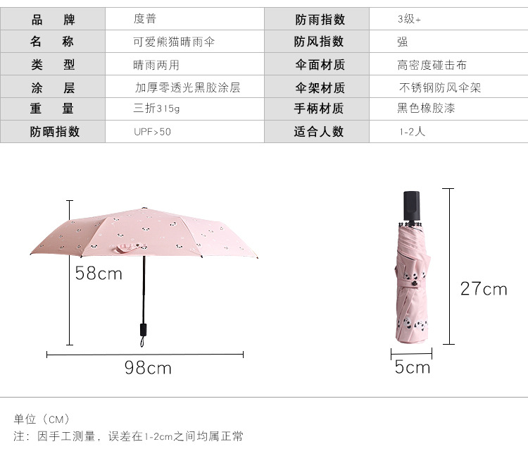 商品名称:熊猫伞三折晴雨两用伞防紫外线 学生礼品定制