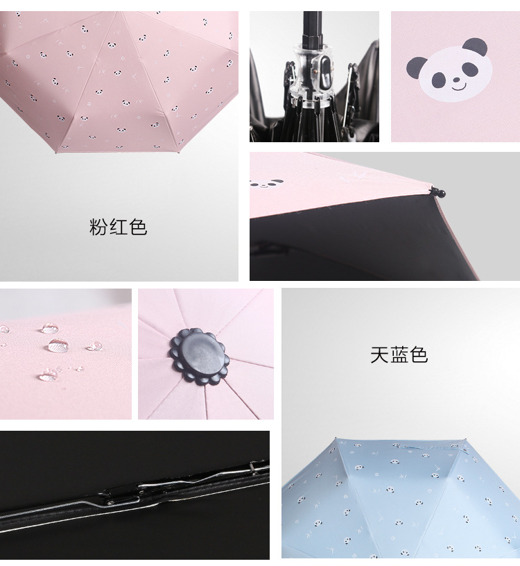 熊猫伞三折晴雨两用伞防紫外线 学生礼品定制