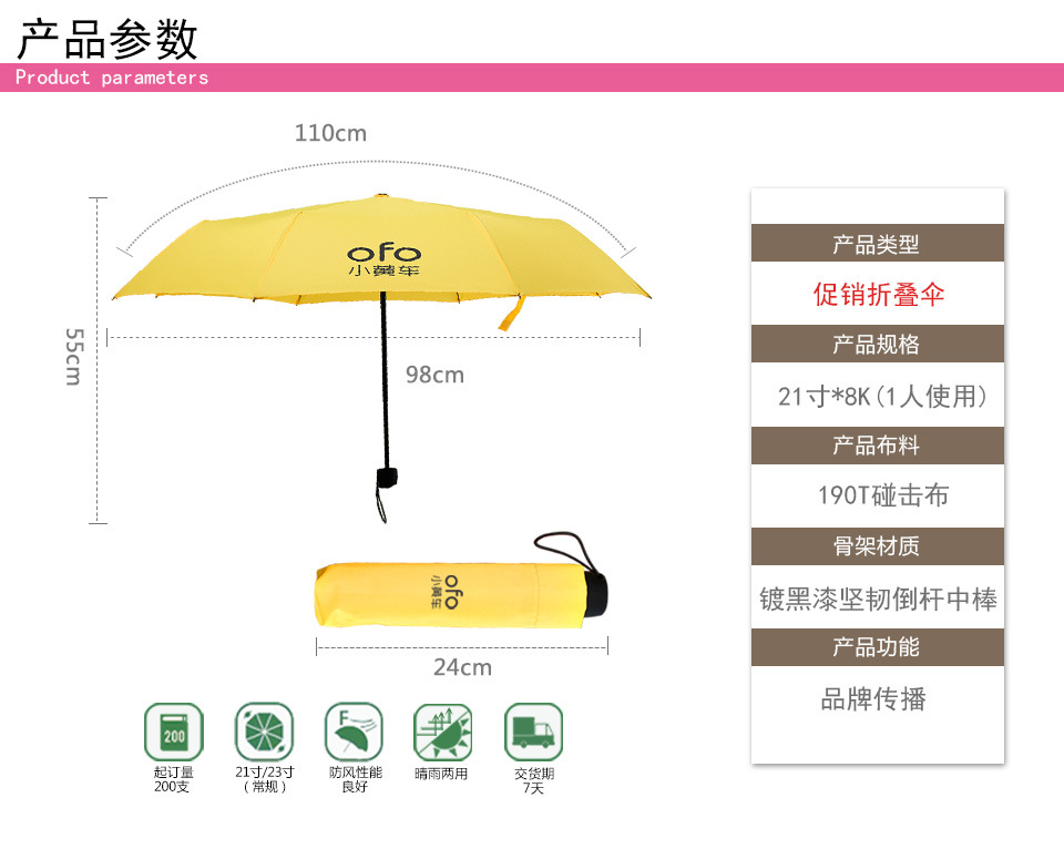 商品名称:长绳折叠纯色折叠伞 促销广告宣传礼品伞定制