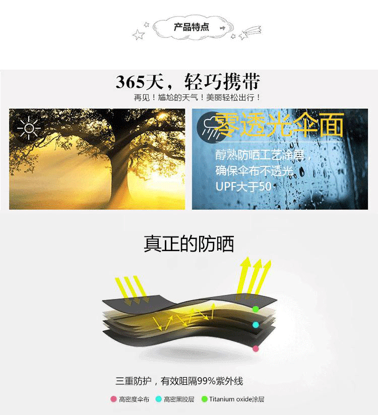 商品名称:四叶草三折伞烫金防紫外线遮阳伞 比赛礼品