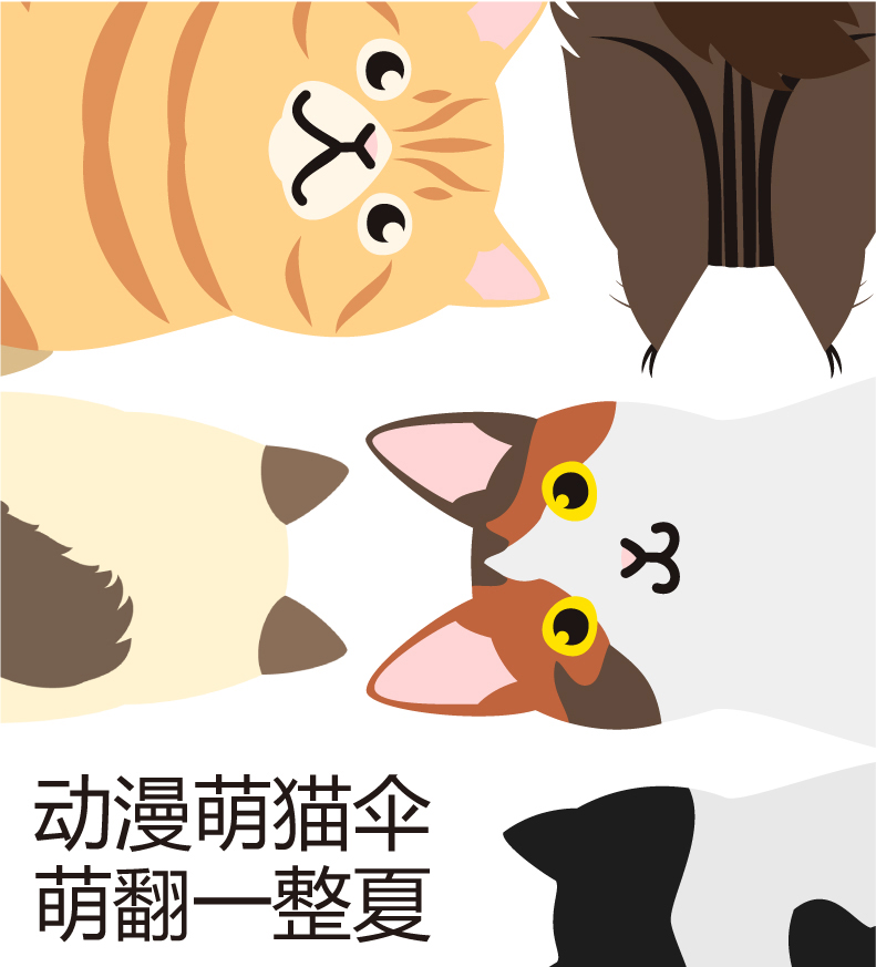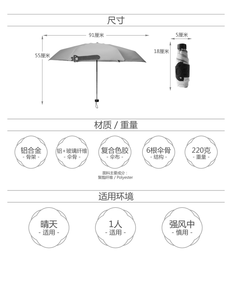 商品名称:动漫萌猫伞五折超轻灰胶印花底防晒伞 客户送什么礼品