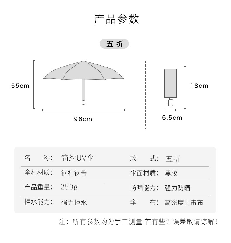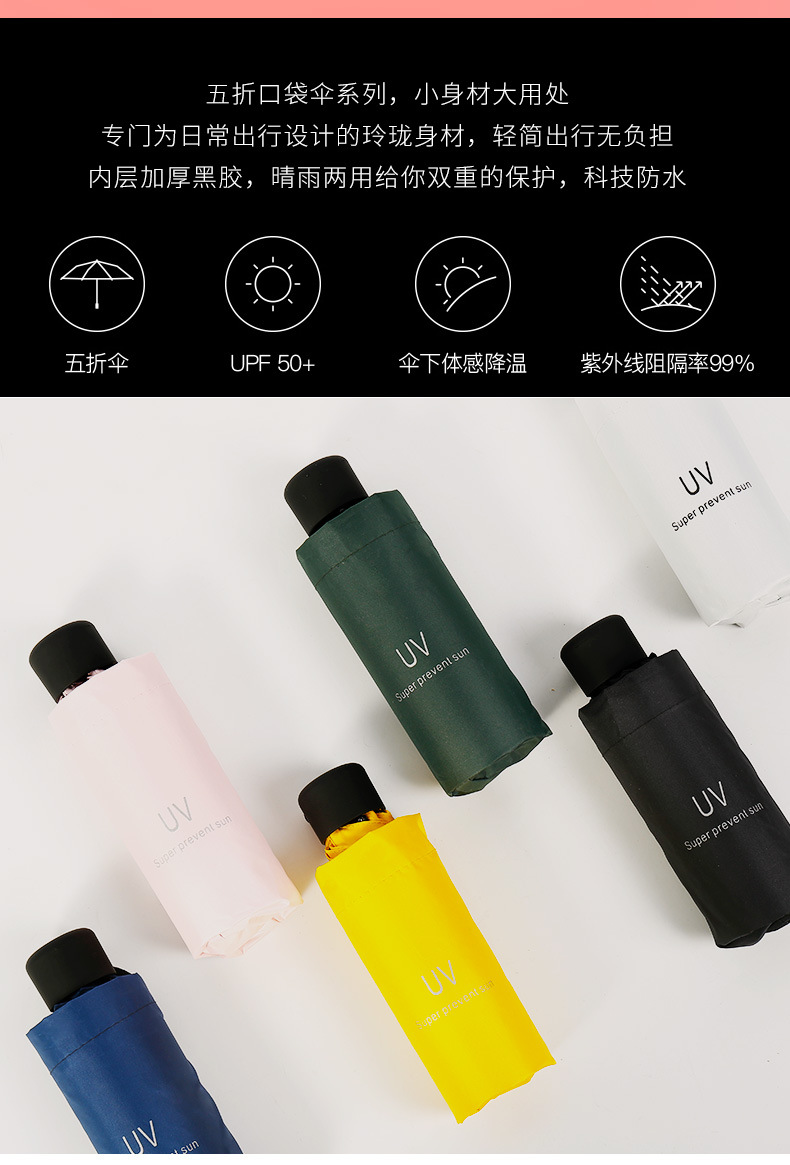 商品名称:时尚超轻五折UV晴雨伞广告伞logo定制户外遮阳伞 夏日礼品