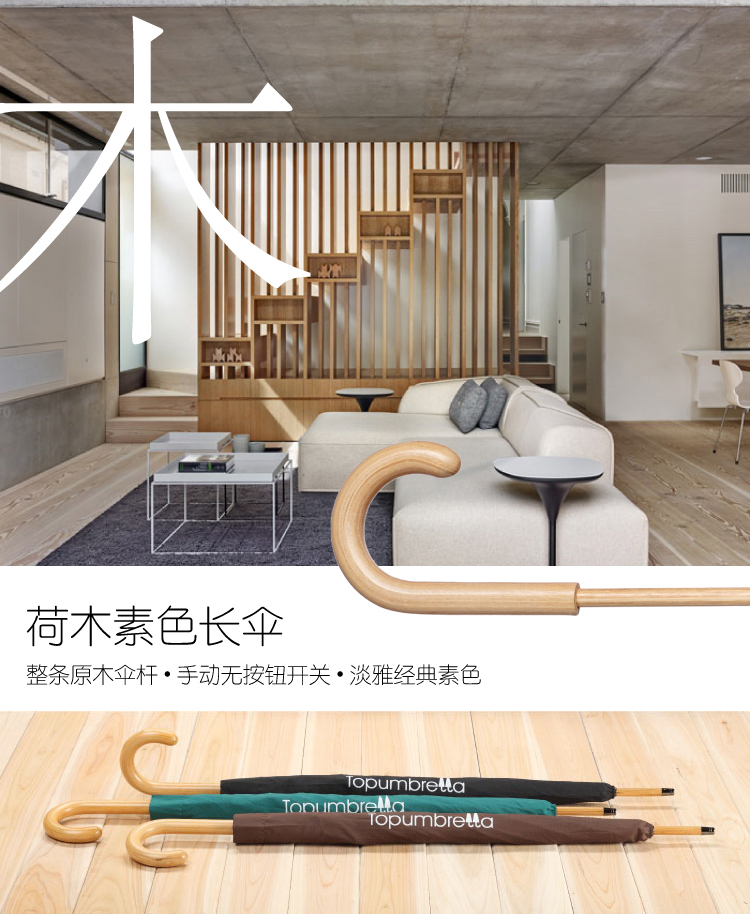 商品名称:文艺小清新纯色木质复古长柄雨伞直柄伞 营销活动小礼品
