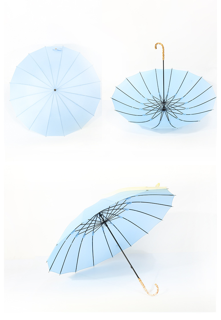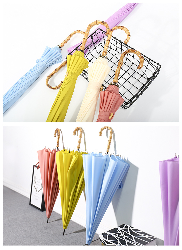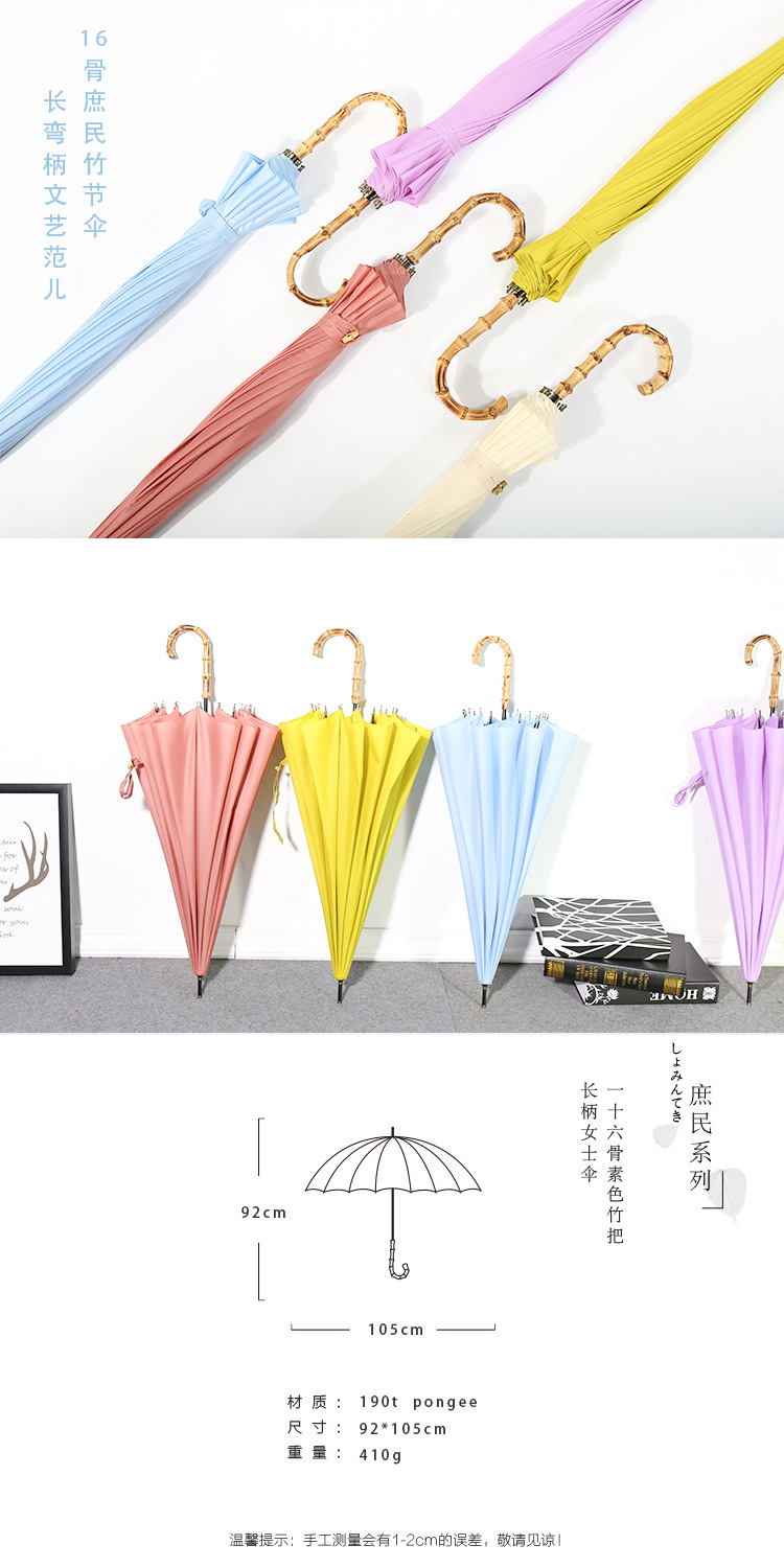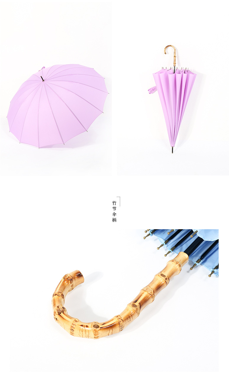 商品名称:超大16骨竹节弯柄直杆伞纯色雨晴两用伞广告伞LOGO定制 实用的会议礼品