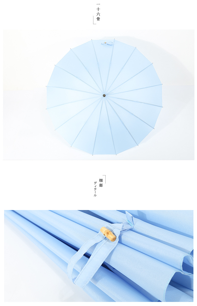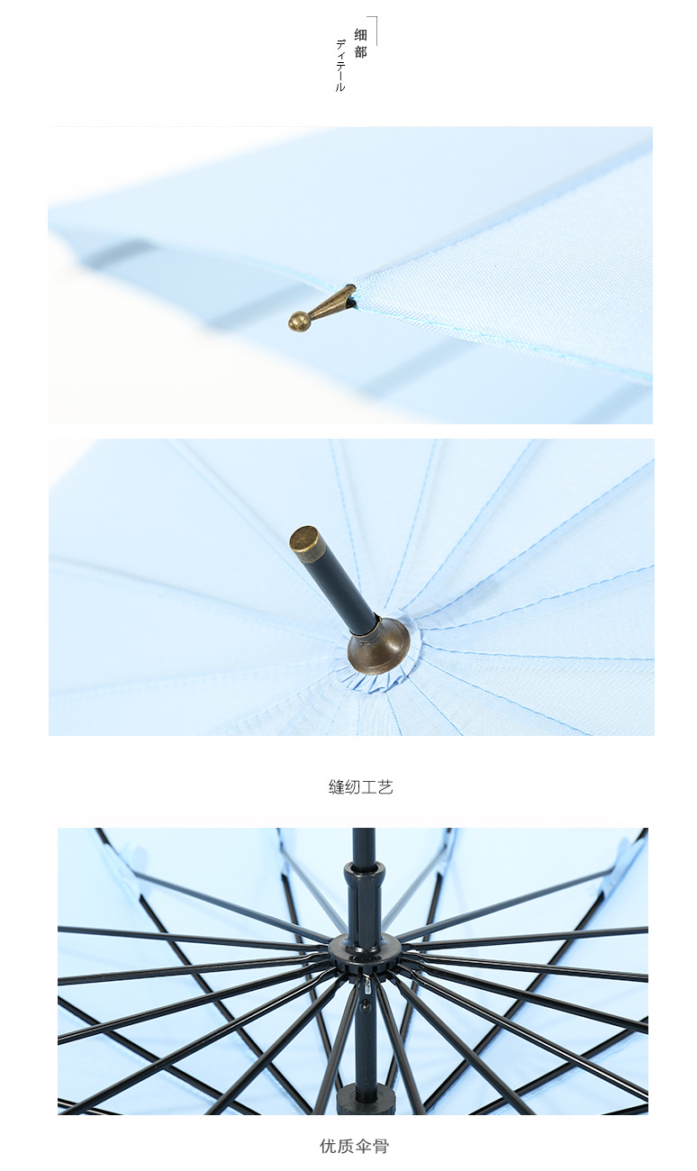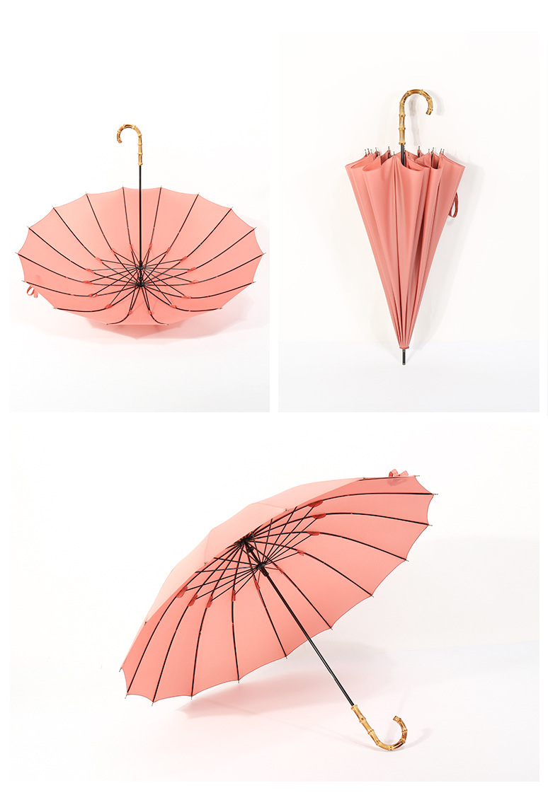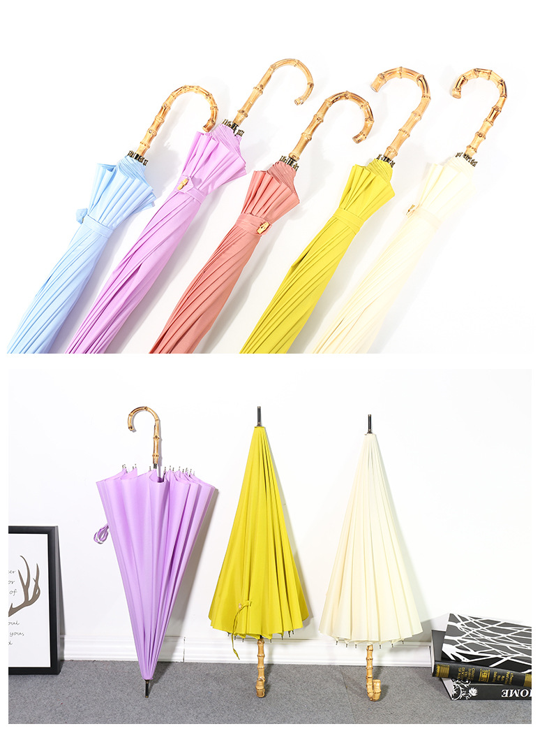 商品名称:超大16骨竹节弯柄直杆伞纯色雨晴两用伞广告伞LOGO定制 实用的会议礼品