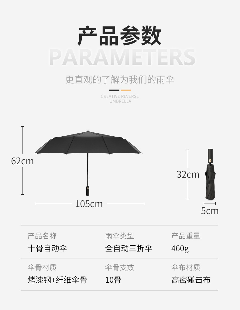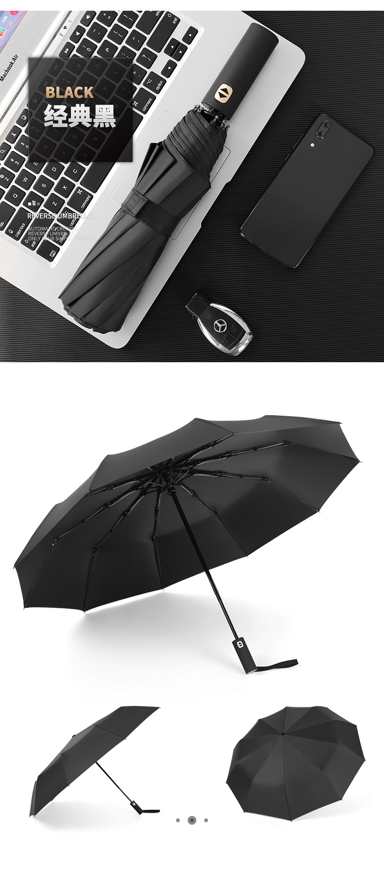 商品名称:商务质感自动伞轻盈防水10骨 加大伞面牢固抗风 展会及会议礼品