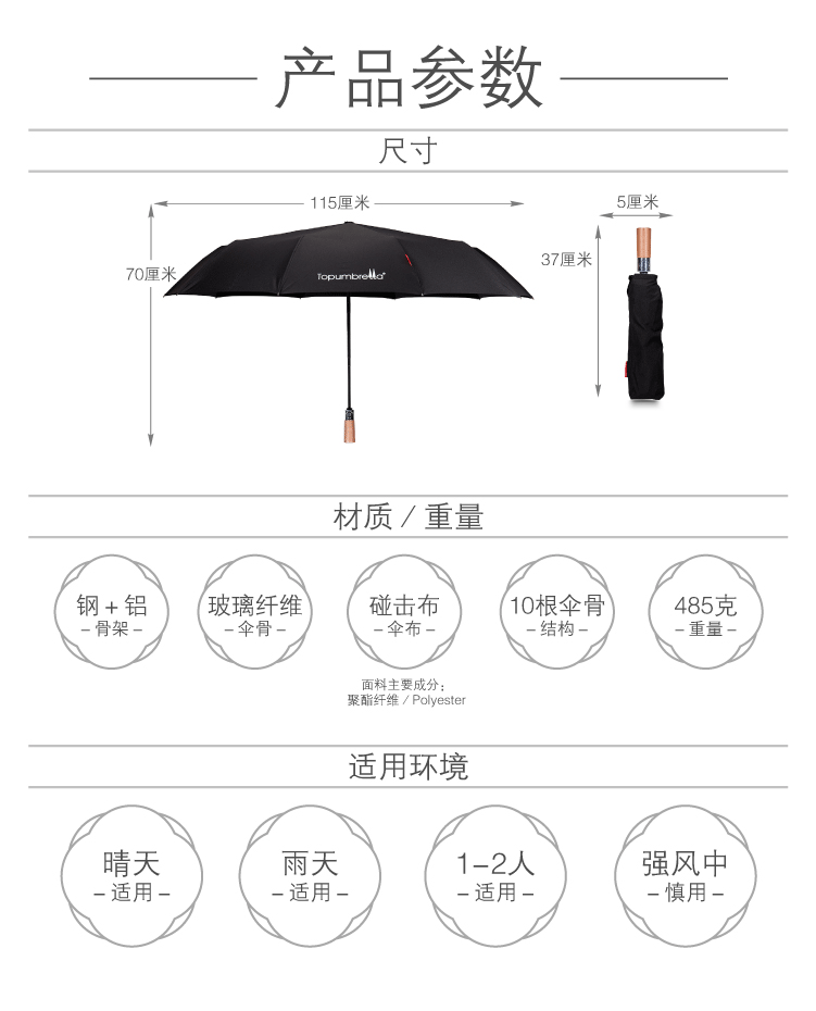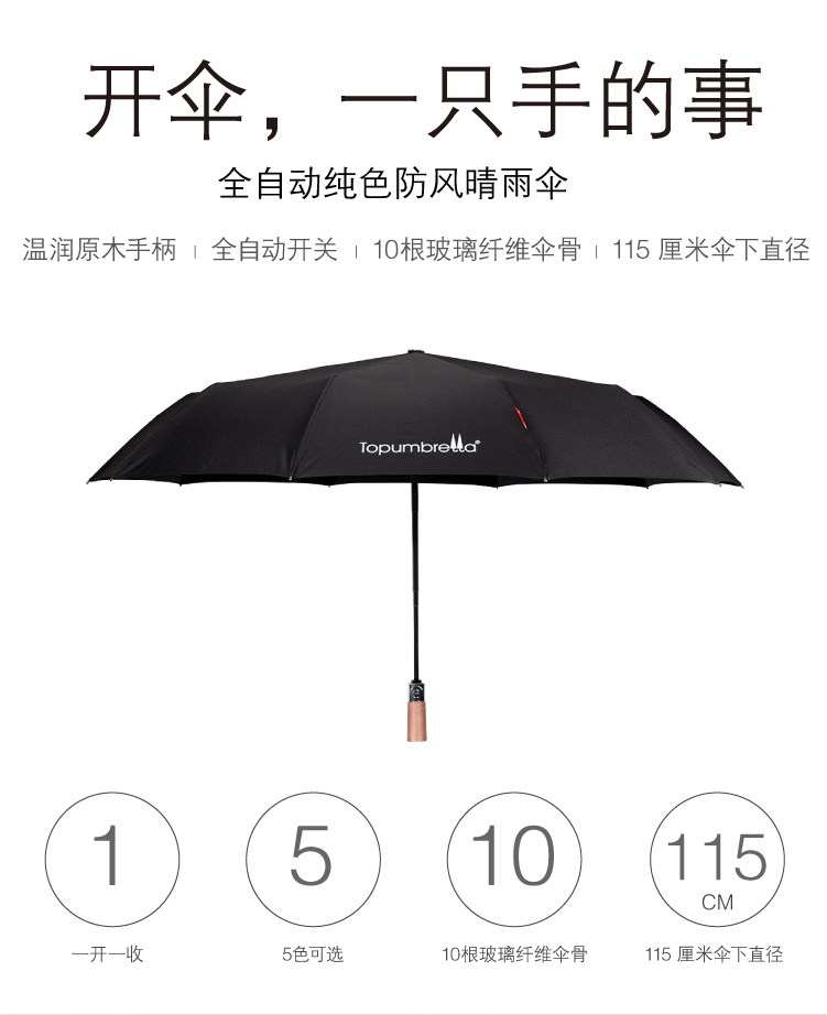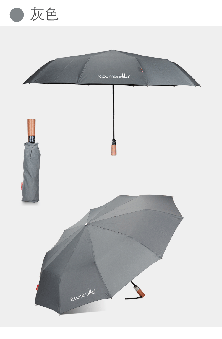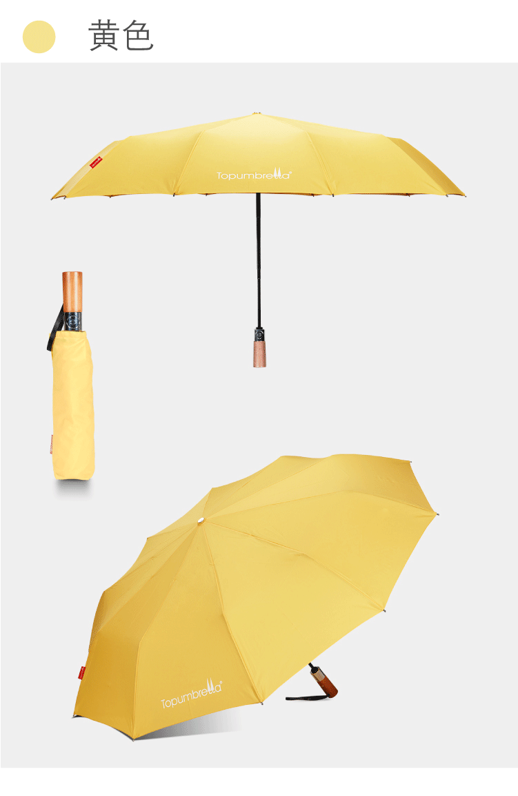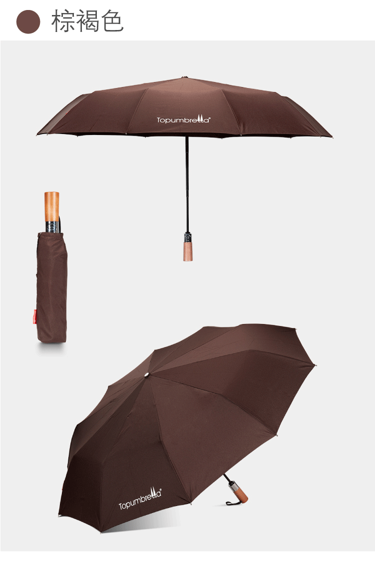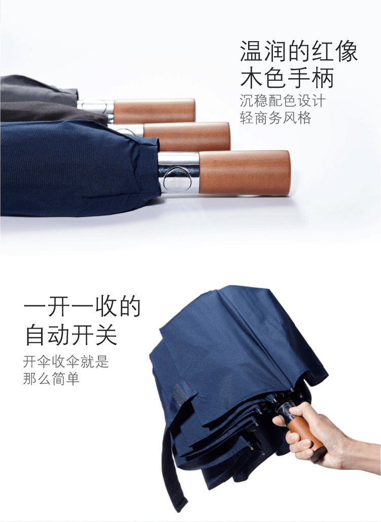 商品名称:全自动纯色防风晴雨伞原木手柄商务三折伞 赠送客户的小礼品