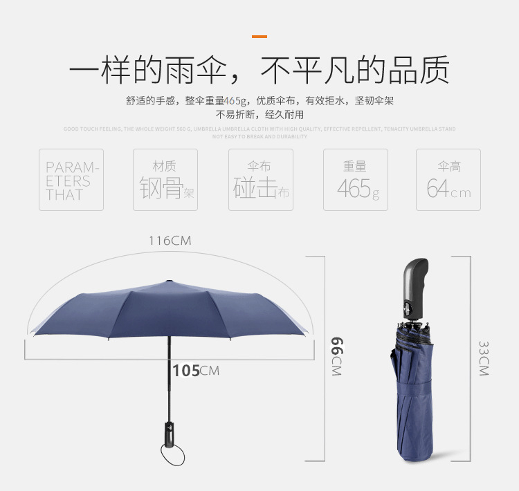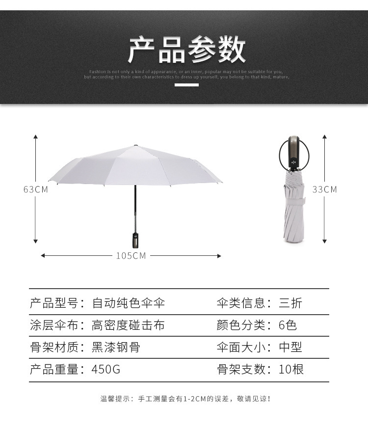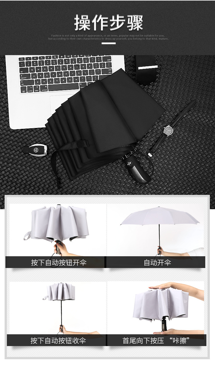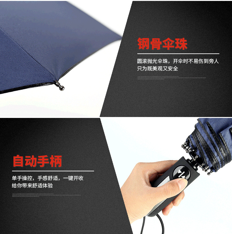 商品名称:全自动自开自收黑胶防紫外线遮阳伞雨伞 实用礼品