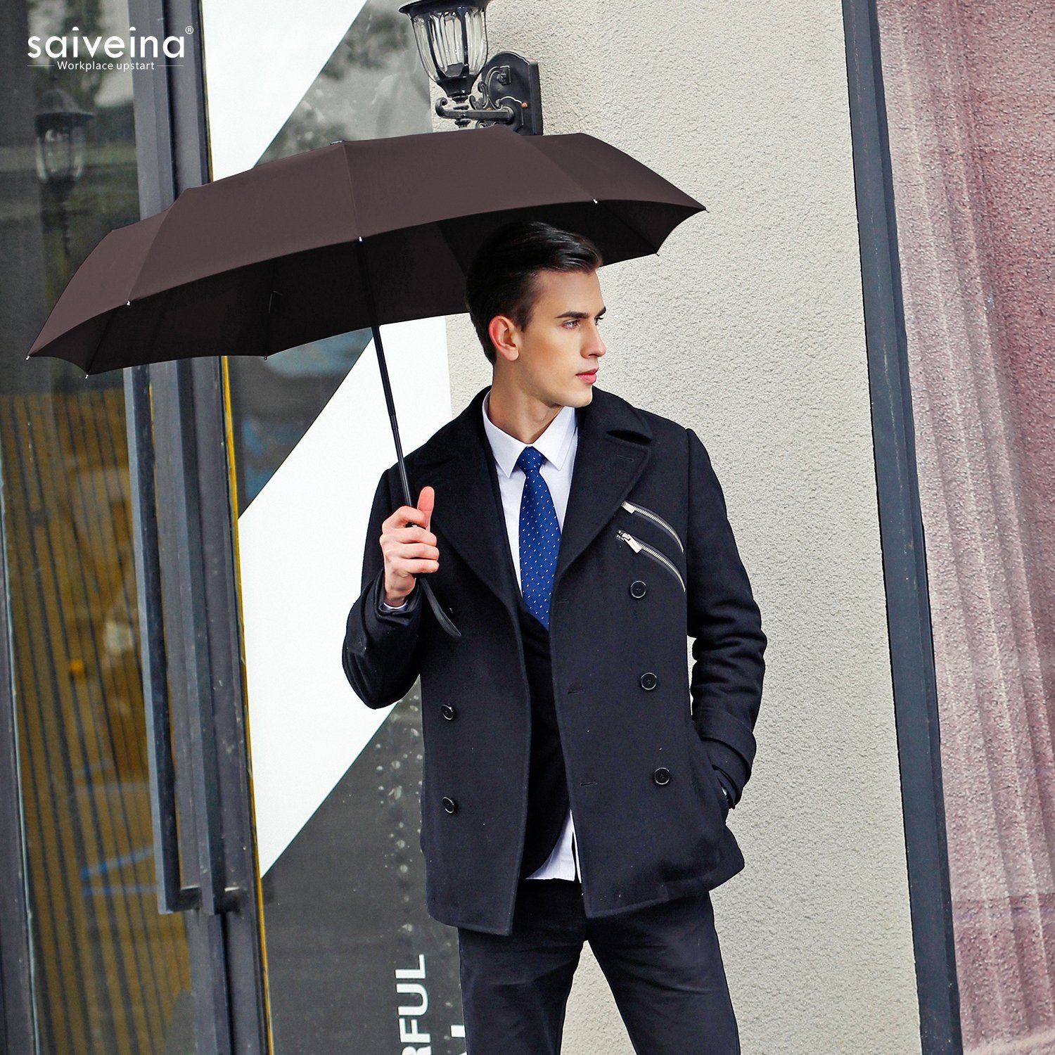 SAIVEINA 高档pu皮 超泼水全自动雨伞 旅游公司礼品