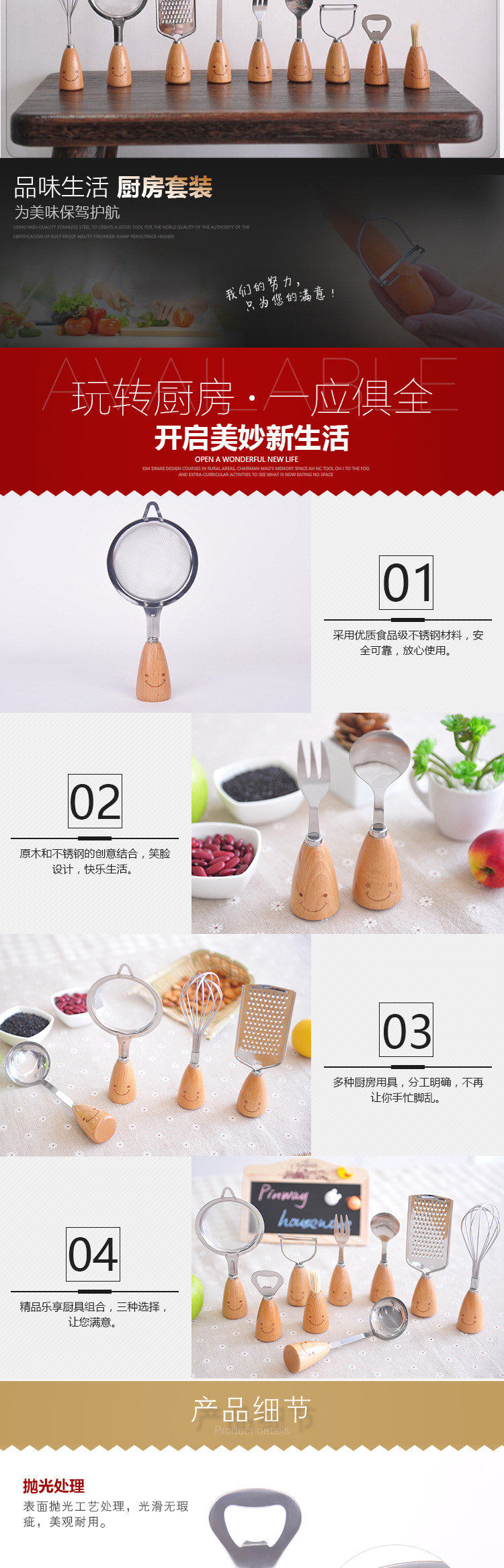 商品名称:若生活 多功能厨房小工具套装 笑脸餐具五件套