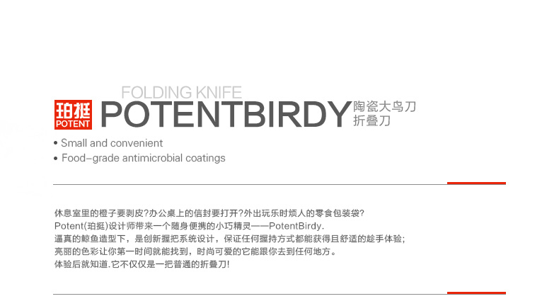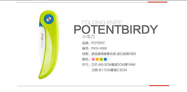 商品名称:创意小鸟折叠陶瓷刀 便携水果刀 健康环保刀具