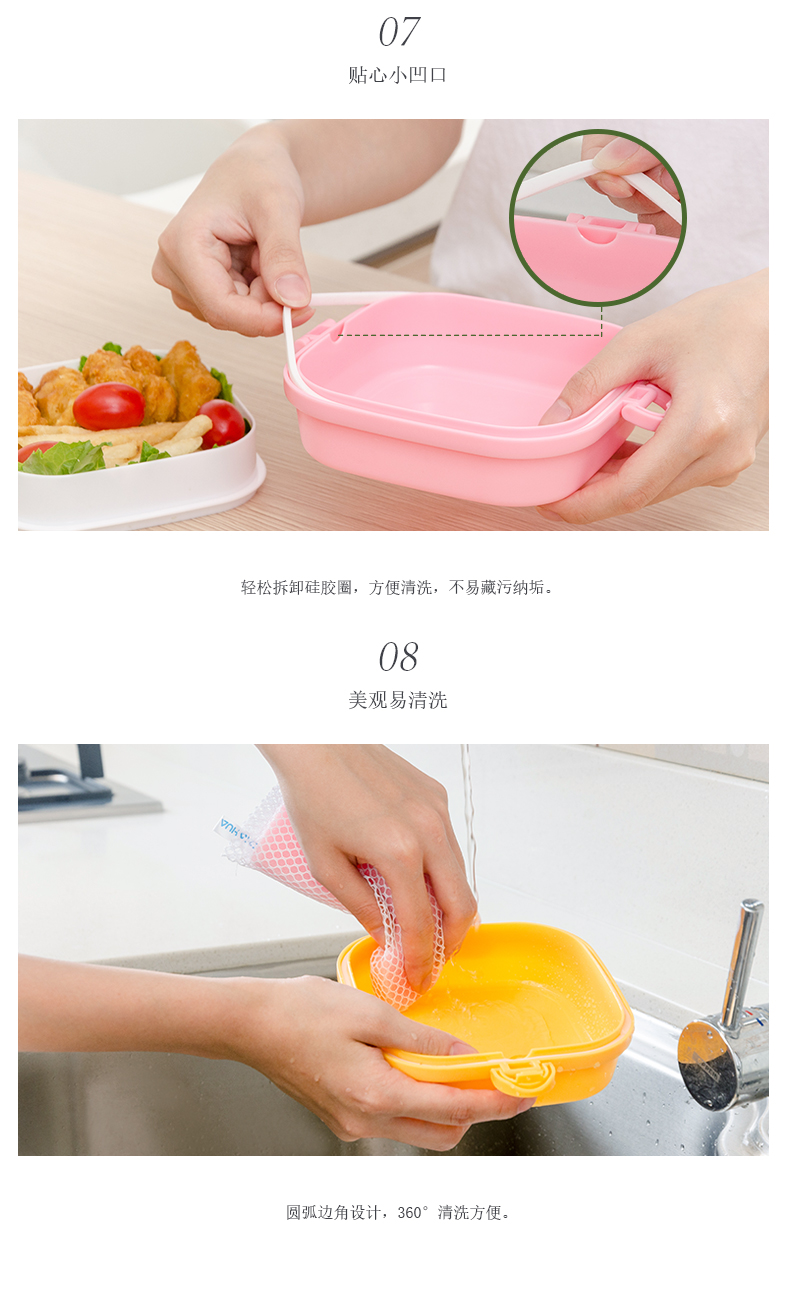 商品名称:纳川带盖便携餐盒 密封便当盒 方形--樱花粉(A0257-GB) 展会送什么礼品