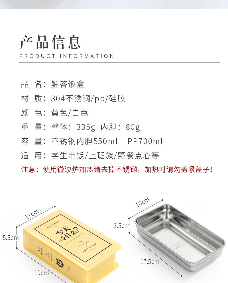 商品名称:今天吃什么创意解答饭盒 不锈钢内胆微博加热便当盒 特色创意礼品