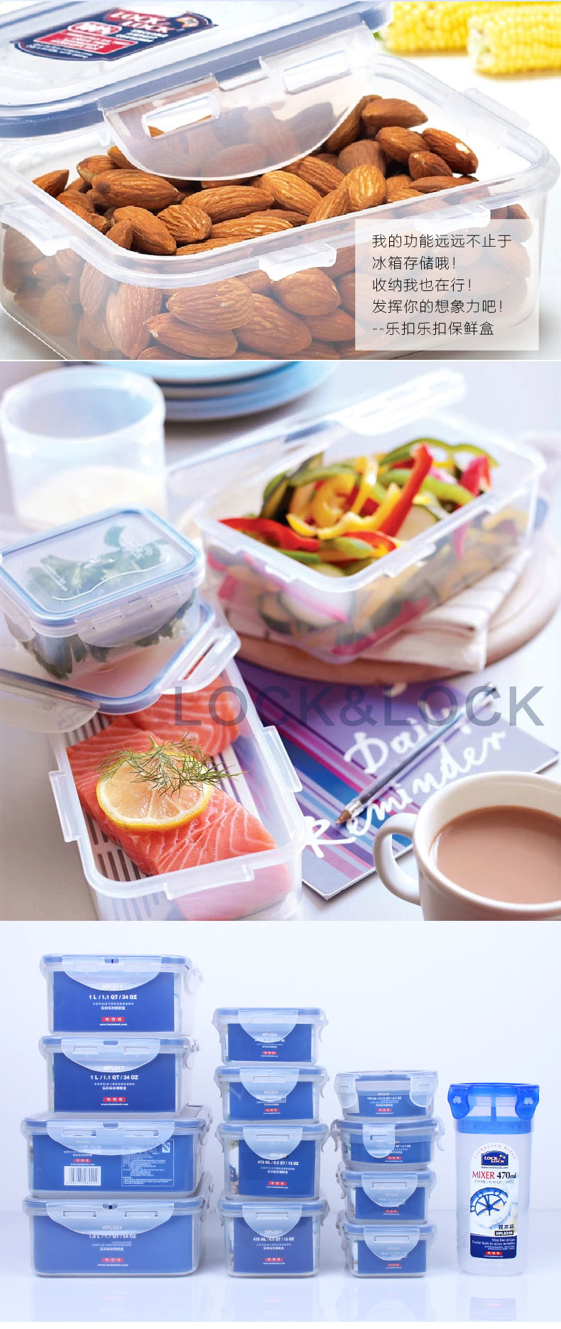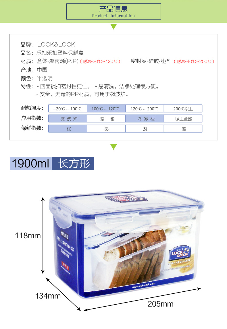 商品名称:乐扣乐扣(Lock&Lock)塑料保鲜盒 微波炉饭盒 便当盒 大容量密封盒收纳盒1.9L HPL818 活动奖品买什么