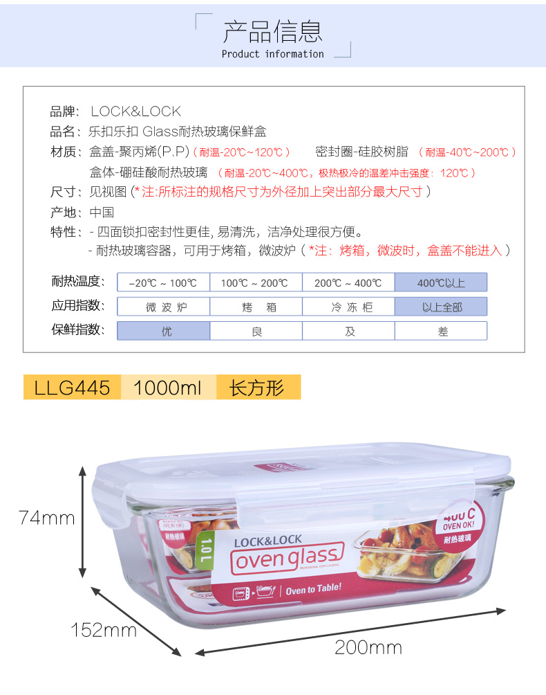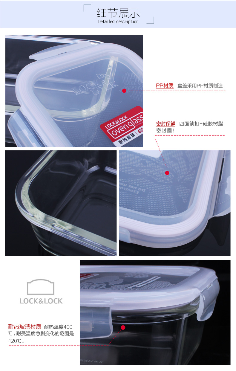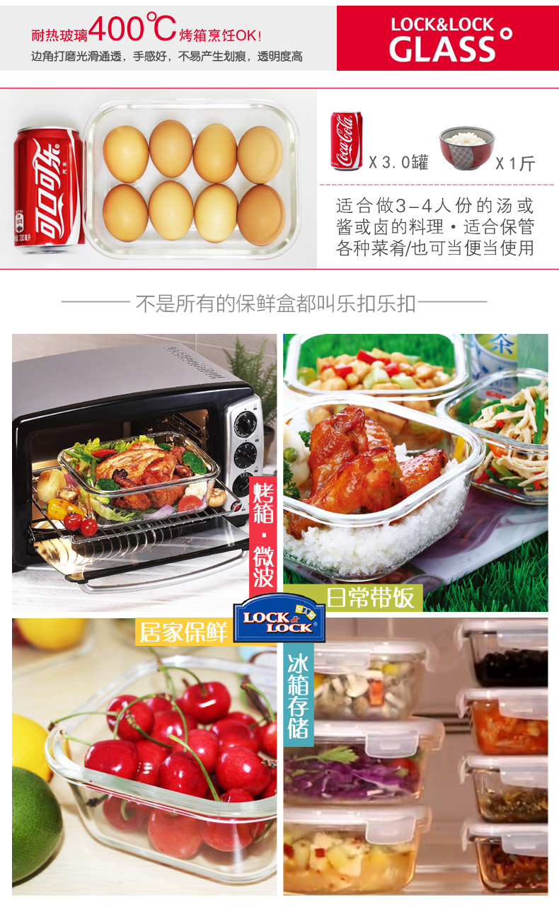 商品名称:乐扣乐扣(Lock&Lock)耐热玻璃保鲜盒 格拉斯饭盒 微波炉便当盒 密封盒1L LLG445 员工礼品 活动奖品