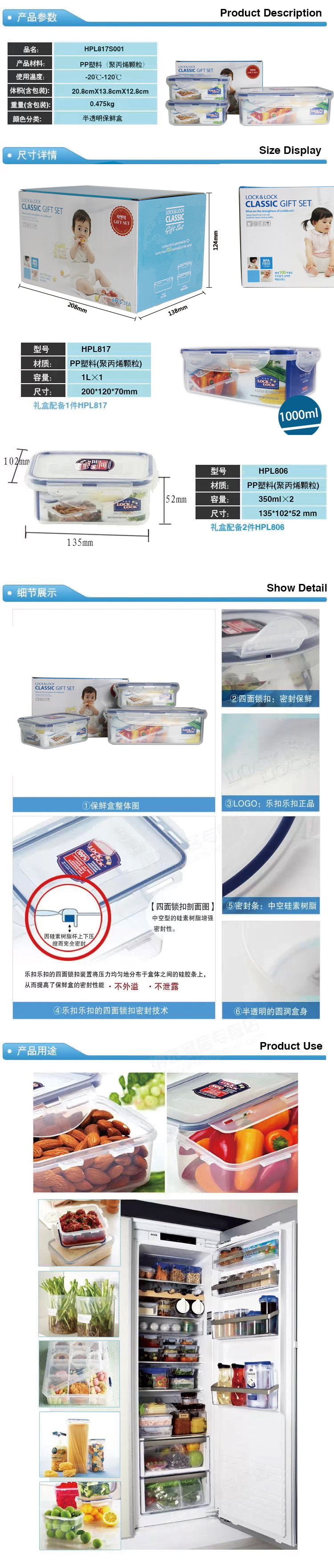 商品名称:乐扣乐扣(Lock&Lock)保鲜盒套装 饭盒3件套 促销礼品套装HPL817S001