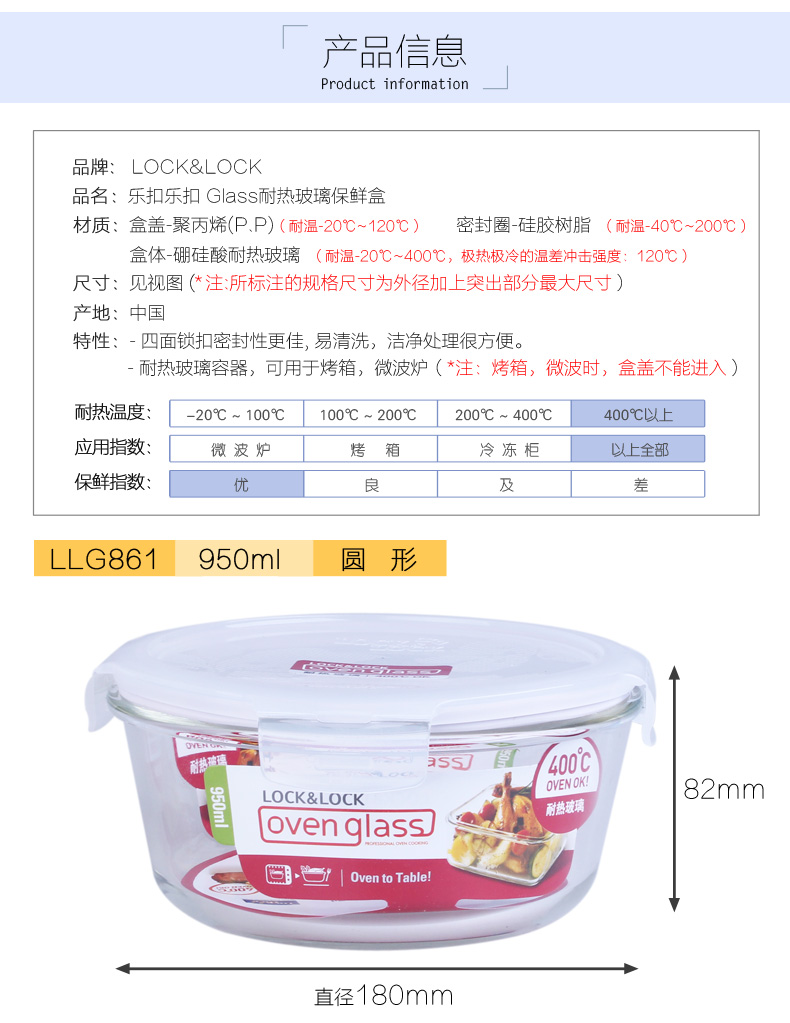 商品名称:乐扣乐扣(Lock&Lock)圆形耐热玻璃保鲜盒 格拉斯饭盒 微波炉便当盒 密封盒950ML LLG861 发给工人的奖品可以发什么 创意实用小礼品