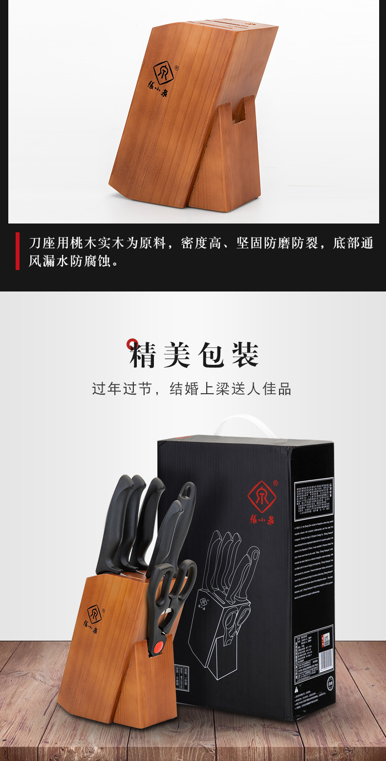 商品名称:张小泉 简秀系列不锈钢刀具家用七件套桃木实木刀座 活动高端小礼品
