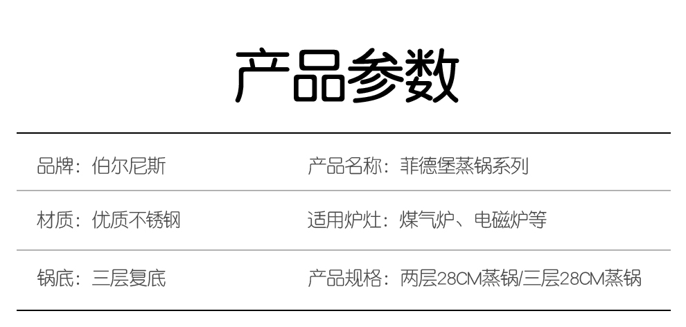 商品名称:伯尔尼斯 菲德堡双层不锈钢复底蒸锅 实用礼品