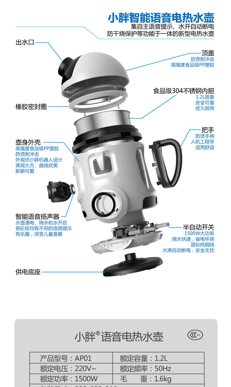 商品名称:【可定制广告语】会说话的电水壶 进化者智能机器人语音提醒 家居创意礼品