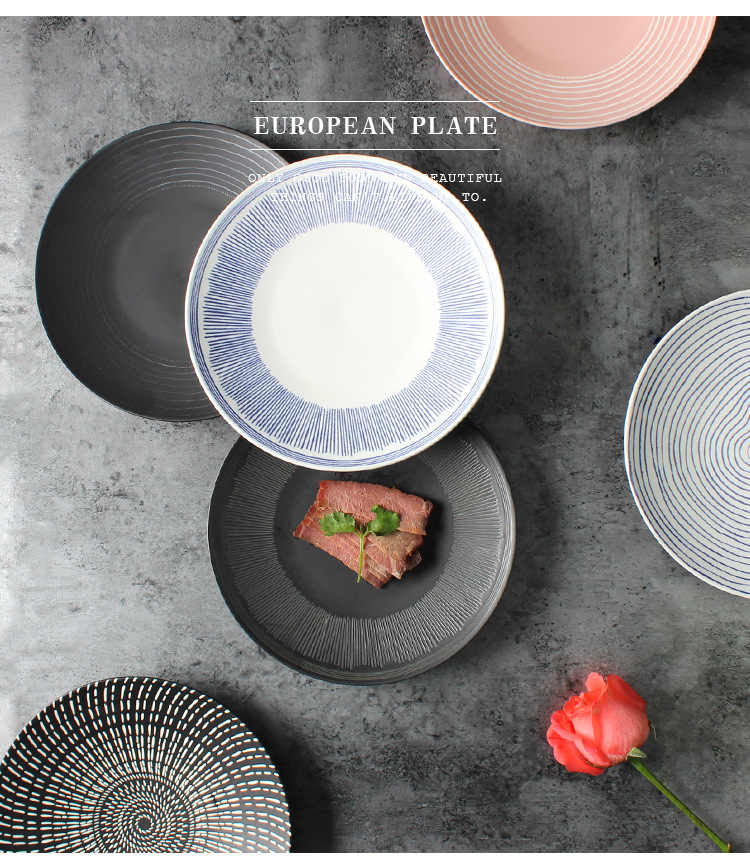 商品名称:创意家用牛排盘 釉下彩简约甜品盘 欧美风复古西餐盘 餐具礼品