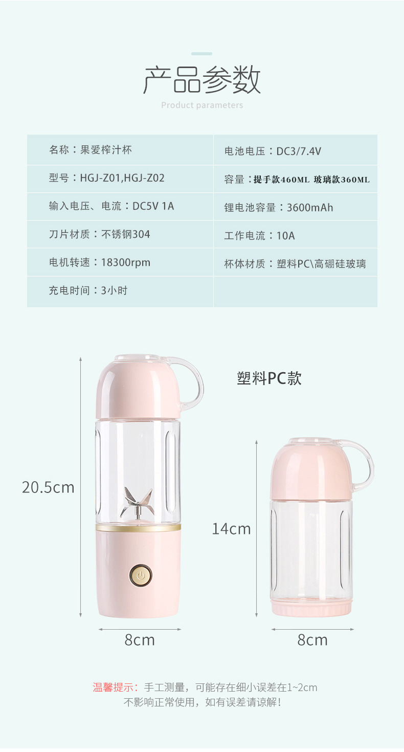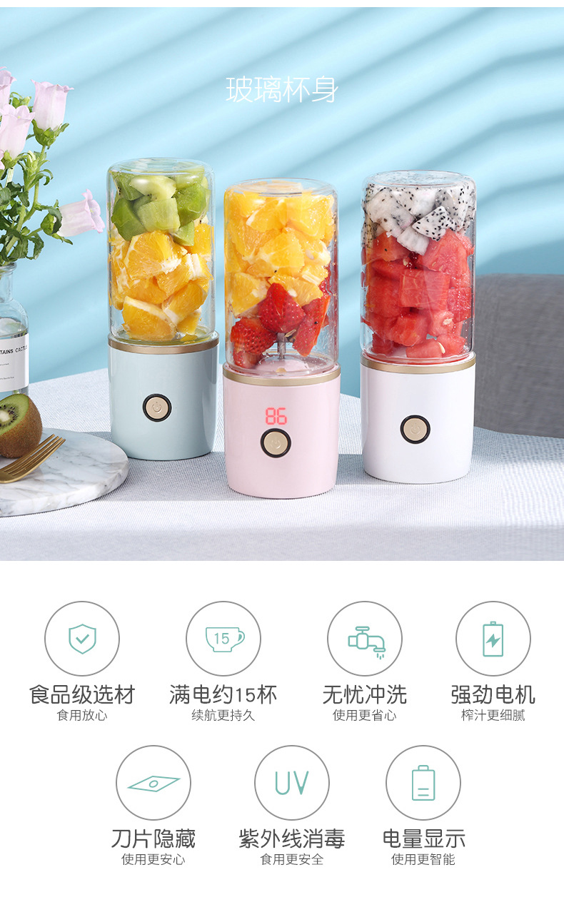 商品名称:果爱提手款智能数显榨汁杯 USB充电数显榨汁机带紫外线消毒带杯盖 公司活动礼品