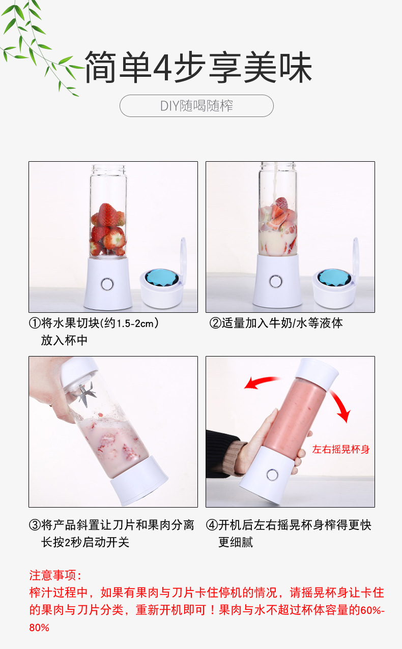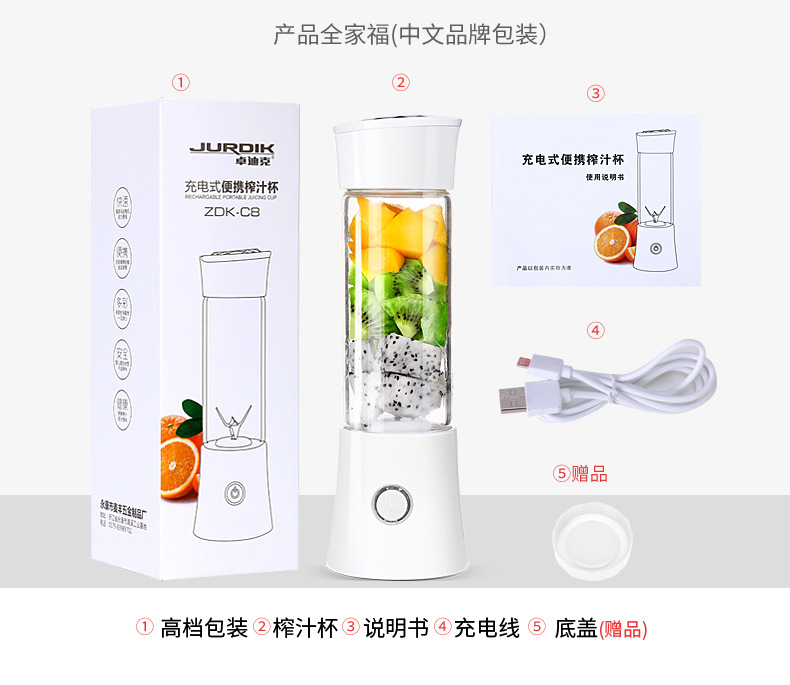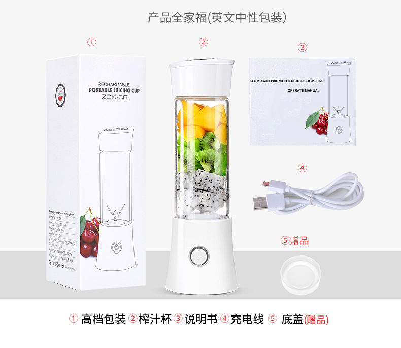 商品名称:无线充电榨汁杯鲜榨果汁杯 30S速榨电量智能指示榨汁杯 实用性强的奖品