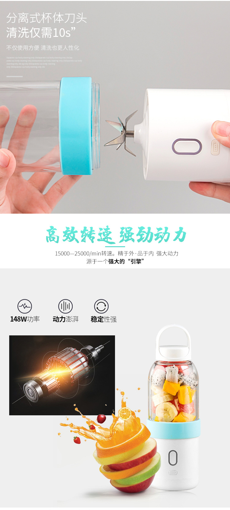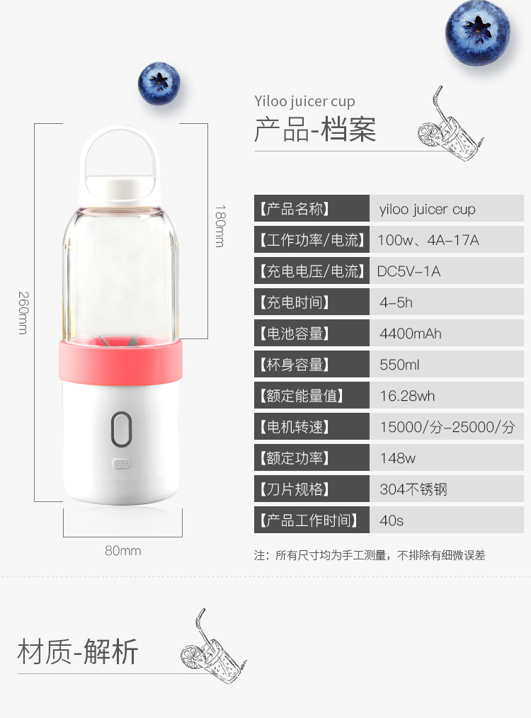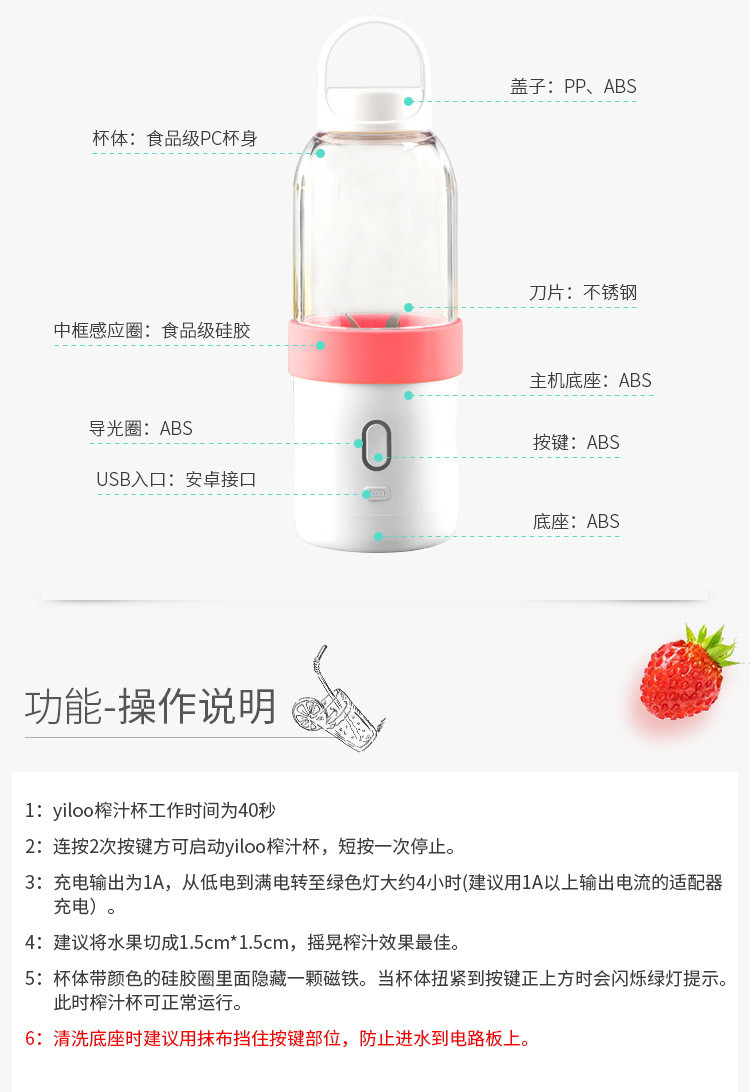 商品名称:榨汁杯电动便携迷你水果蔬菜杯子 活动奖品设置